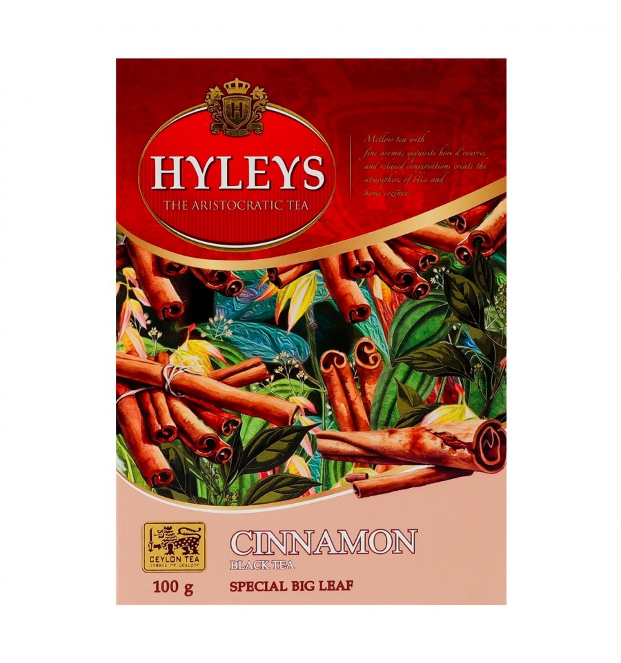 Чай Hyleys Корица черный цейлонский байховый цельнолистовой с добавлением растительного сырья 100г. Состав: цейлонский черный байховый чай цельнолистовой, кусочки корицы, идентичный натуральному ароматизатору корицы. При относительной влажности воздуха не более 70%. Сухое место без постороннего запаха. Срок годности: 35 месяцев. Страна производитель: Шри-Ланка. Производитель и адрес производителя: Regency Teas (Pvt) Ltd, Биагама Роуд, 359, Келания, Шри-Ланка. Адрес производственных мощностей: Биагама Роуд, 359, Келания, Шри-Ланка. Импортер и адрес импортера: ООО "Селектед ТИ", ул. Васильковская, дом. 14, корп. А, комн. 301, г. Киев, Украина, 03040. Масса нетто: 100г.
