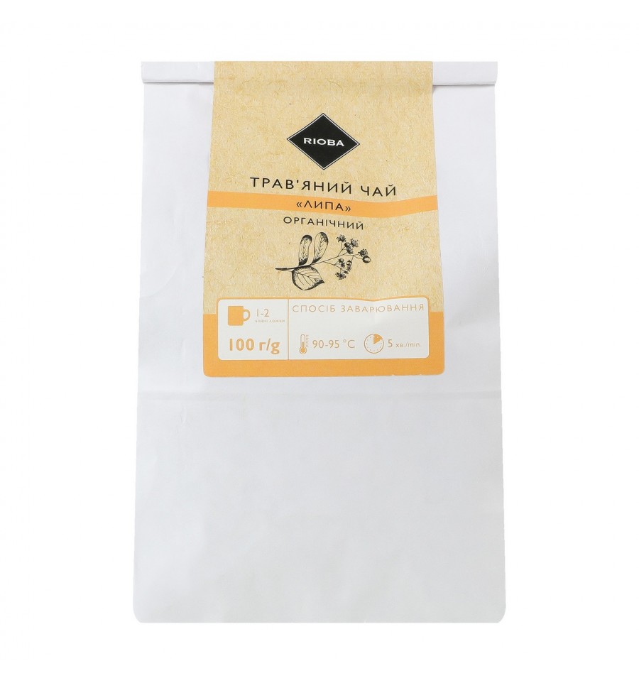 Чай Rioba Липа травяная органическая 100г. Состав: цвет липы сушеный органический (100%). При относительной влажности воздуха не более 70%. Сухое место без постороннего запаха. Срок годности: 3 года. Страна изготовитель: Украина. Производитель и адрес производителя: ООО "Мольфар Эко", ул. Константиновская, дом. 2А, оф. 400, г. Киев, Украина, 04071. Адрес производственных мощностей: ул. Центральная, дом. 149А, с. Изки, Хустский р-н, Закарпатская обл., Украина, 90020. Масса нетто: 100г.