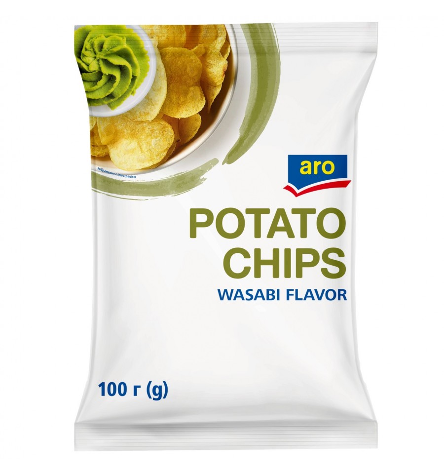Состав: картофель 62 %, подсолнечное масло рафинированное дезодорированное, комплексная пищевая добавка «Васаби» 4 % (мальтодекстрин, соль поваренная, ароматические вещества, усилители вкуса и аромата (натрия глутамат, динатрия 5'-инозинат, динатрия (пальмовая), антиспекающий агент (трикальция ортофосфат), красители (экстракт куркумы, хлорофиллов и хлорофиллинов медные комплексы, бриллиантовый синий FCF) Энергетическая ценность 2239 кДж (kJ) / 3 г (g), углеводы - 53,94 г (g), из них сахара - 4,6 г (g), белки - 6,4 г (g), соль - 1,37 г (g) может содержать следы арахиса. Хранить в хорошо вентилируемых помещениях при температуре не выше 25 °С и относительной влажности не более 75 %. 49000, Украина. Адрес мощностей производства: ул. Василия Стуса, 54 в, г. Павлоград, Днепропетровская обл., 51400, Украина.