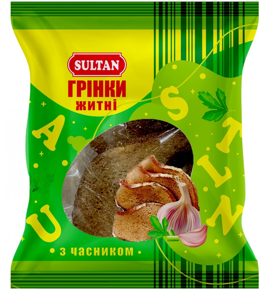 Гренки ржаные ТМ Sultan slt.50977 с чесноком, 80г