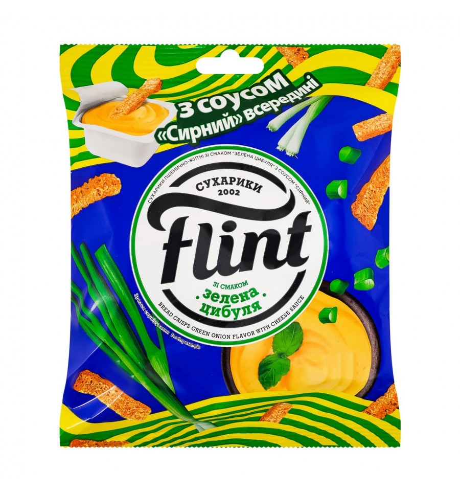 Сухарики пшенично-ржаные Flint Зеленый лук + соус Сырный 80г