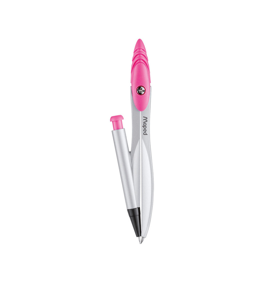 Очень прочные металлические ножки, стильный дизайн, эргономичная головка циркуля, с запасным грифелем, ударопрочный футляр с выдвижной крышкой, рекомендуется детям от 10 лет, цвет: металл с чёрным ,металл с салатовым, металл с розовым.