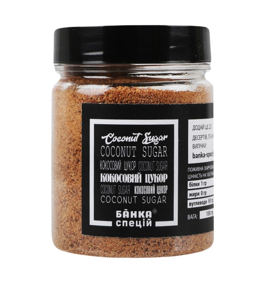Сахар кокосовый Банк Специй 130г. Кокосовый сахар. Энергетическая ценность продукта: 382ккал/100г. Питательная (пищевая) ценность продукта: белки – 1г/100г, жиры – 0г/100г, углеводы – 93г/100г. Рекомендуемый способ приготовления/употребления: добавь это к: десертам, печенью, выпечке. Условия хранения: хранить при температуре +5…25ºC и относительной влажности воздуха не более 65%. Сухое место без попадания прямых солнечных лучей. Срок годности: 12 месяцев. Страна изготовитель: Украина. Производитель и адрес производственных мощностей: ФЛП Масло М.В. Тяжиловский тупик, 1е, г. Винница, Украина. Масса нетто: 130г.