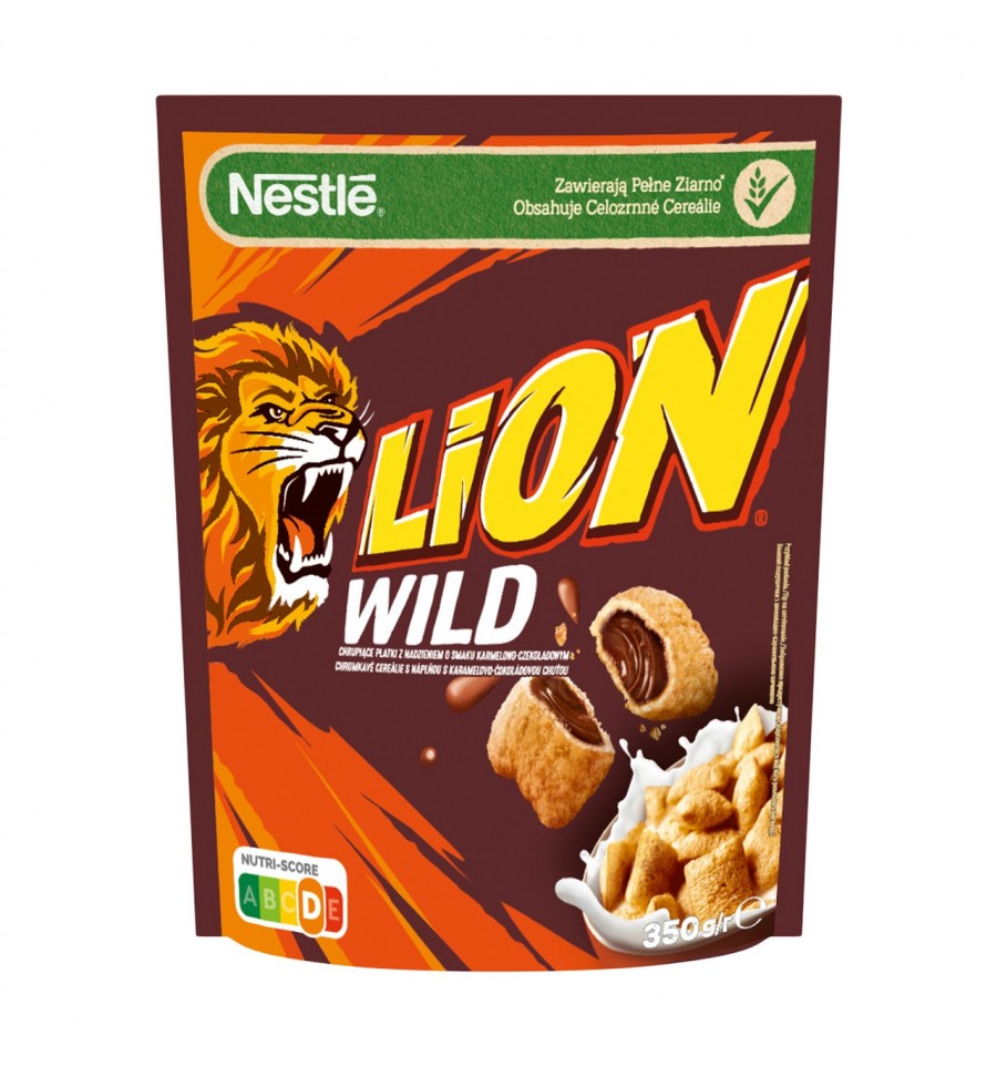 Новое Завтрак сухой Lion Wild злаковые подушечки с шоколадом с витаминами и железом 350г