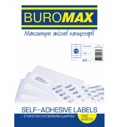 Этикетки самоклеящиеся, 12 шт/л.,105х44 мм, 100 л. в упаковке, BM.2825