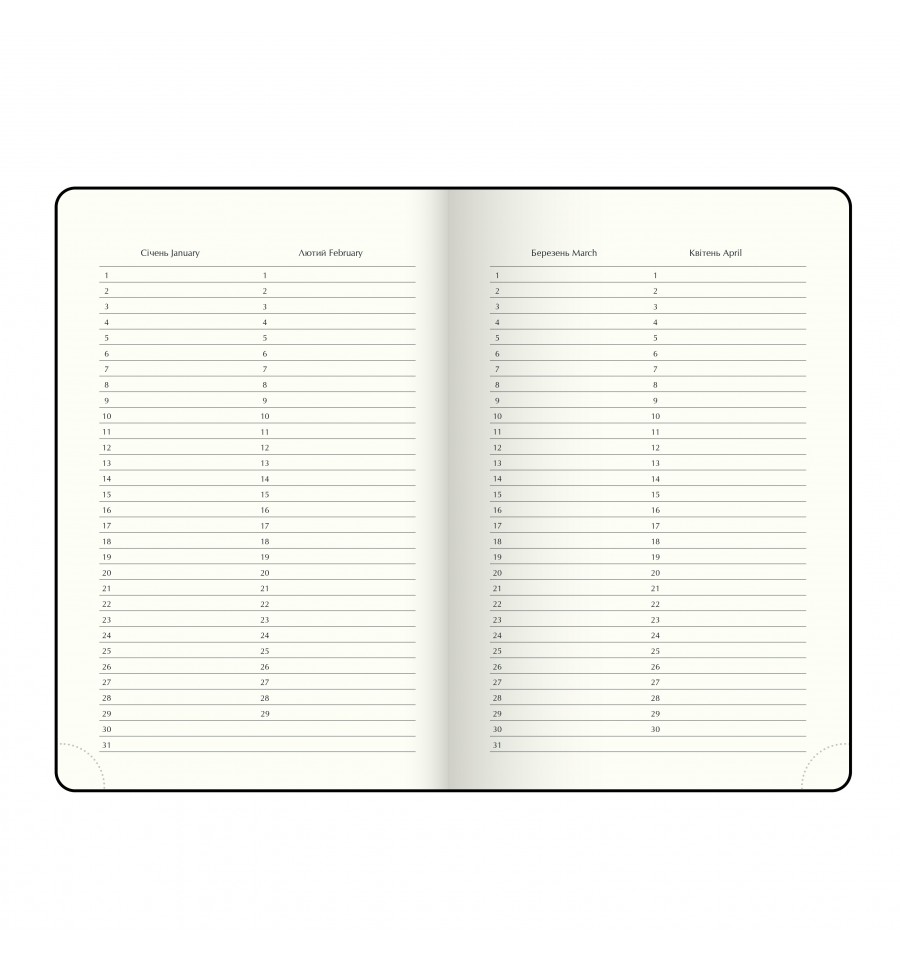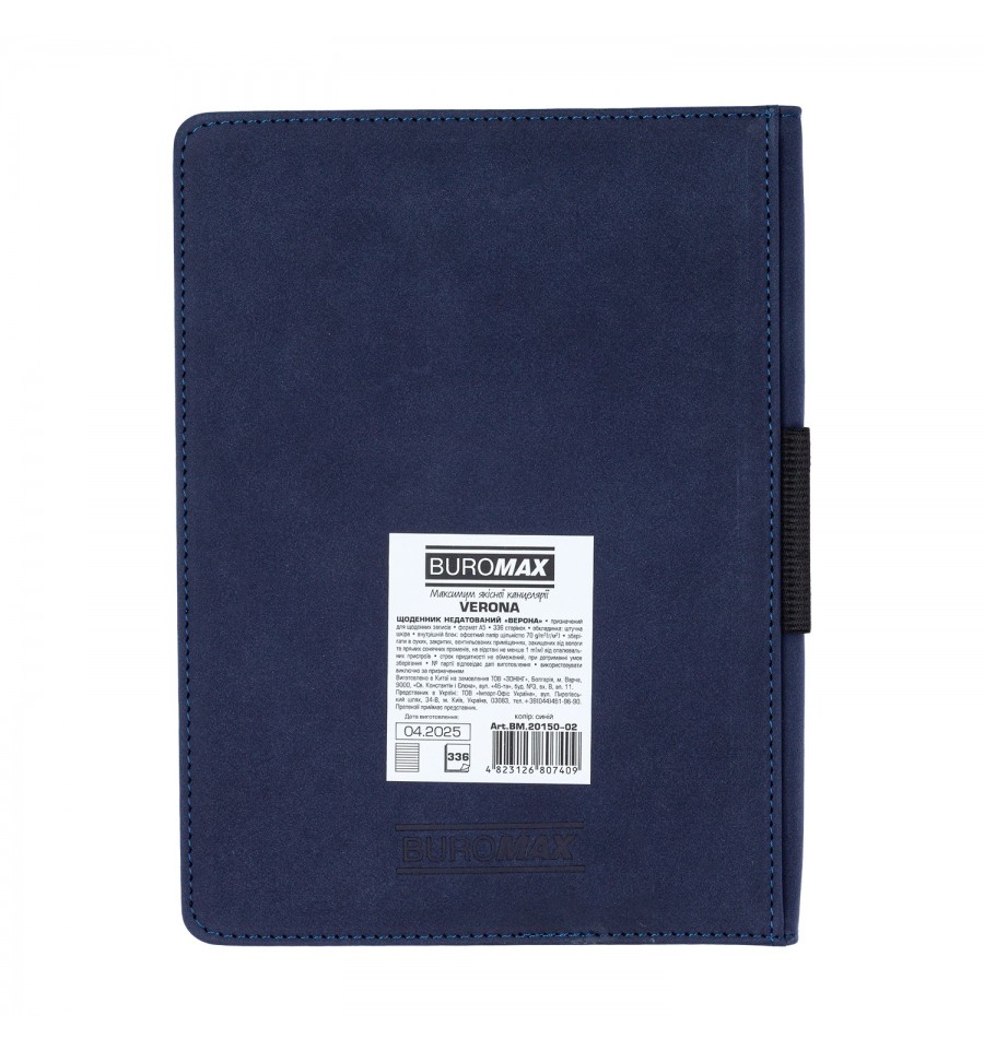Дневники BUROMAX – это всегда широкий выбор самых разных обложек, фактур и цветов. Мы найдем подход к сердцу каждого покупателя!Жесткий переплет дневника VERONA выполнен из искусственной кожи с комбинацией цветов и фактур. Периметр обложки и вставки на лицевой стороне оформлены декоративными швами. Резинка-петелька на корне обеспечит постоянное присутствие письменных принадлежностей под рукой владельца дневника. Гармонично завершает образ дневника тонированный срез в цвет обложки.Недатированный дневник сохранил преимущества датированного дневника, но вместе с тем не зависит от дат, позволяющих вести записи без хронологии и в произвольном порядке.Формат А5 336 страниц Твердый переплет из искусственной кожи с поролоном Внутренний блок: офсетная бумага кремового цвета плотностью 70 г/м² Закладка-лесе в цвет обложки поможет быстро найти необходимую страницу. Перфорированные уголки листов Карты Украины и Европы на форзацах Индивидуальная упаковка: картонная коробка Структура внутреннего блока:Страница для внесения личной информации Планинг на год Информационно-справочный блок: телефонные коды мобильных операторов и областных центров Украины, буквенные автомобильные коды стран, таблица расстояний между областными центрами Украины, справочник систем измерения, международные знаки соответствия, знаки ухода за одеждой Недатированные страницы с линией в линию имеют строку для надписи даты Алфавитная книга для внесения контактов Дневник BUROMAX формата А5 – это выбор, проверенный временем, самый популярный формат для незаменимого помощника в планировании Вашего рабочего дня!
