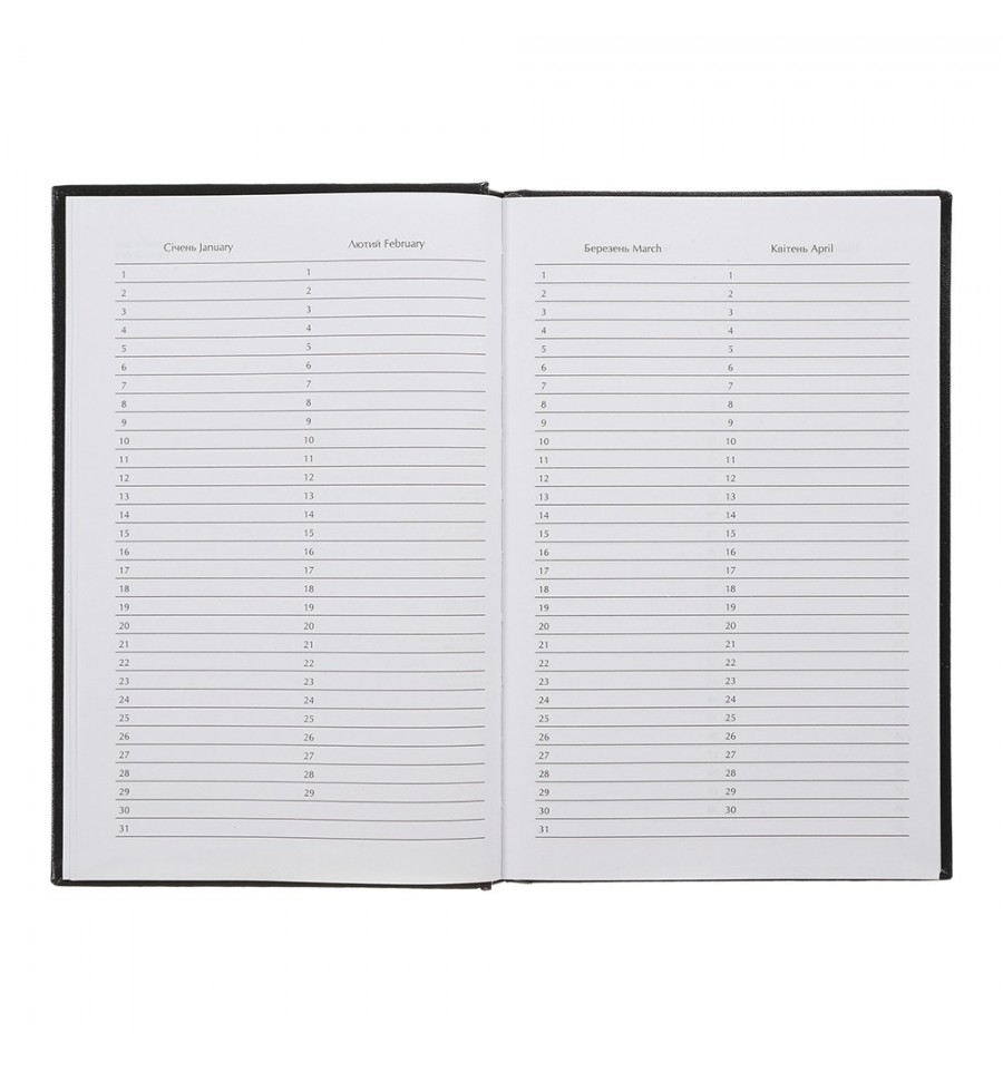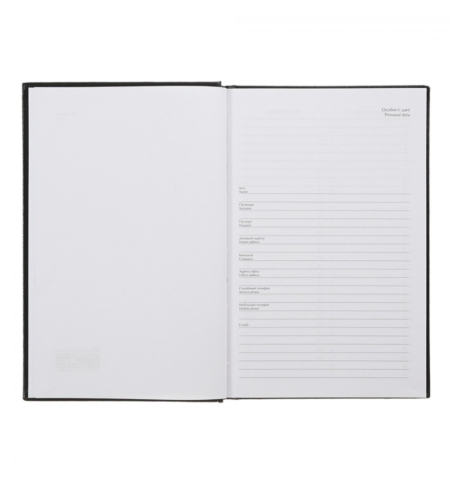 Дневники BUROMAX – это всегда широкий выбор разных обложек, фактур, размеров и цветов. Мы найдем подход к сердцу каждого покупателя!Недатированный ежедневник AIRY - предназначен для ежедневных записей. Может использоваться офисными работниками, студентами, представителями деловой сферы, пользователями образовательной и административной деятельности.• недатированный формат позволяет делать записи в произвольном порядке • язык блока – украинский, английский • обложка – жесткая, из бумвинила • отделка – нанесение Трезубца серебряной фольгой • закладка-лесное – серого цвета • печать блока – серым цветом • упаковка – индивидуальная, прозрачная пленкаСтруктура внутреннего блока:страница для внесения личной информации планинг на год информационно-справочный блок: телефонные коды мобильных операторов и областных центров Украины, буквенные автомобильные коды стран, таблица расстояний между областными центрами Украины, справочник систем измерения, международные знаки соответствия, знаки ухода за одеждой страница для внесения контактов Технические характеристики: • формат – мини А5 (140×215 мм) • количество страниц – 320 • материал обложки – бумвинил • цвет обложки – черный • цвет бумаги внутреннего блока – белый • плотность бумаги, г/м² – 60Состав: Бумага, картон, бумвинил