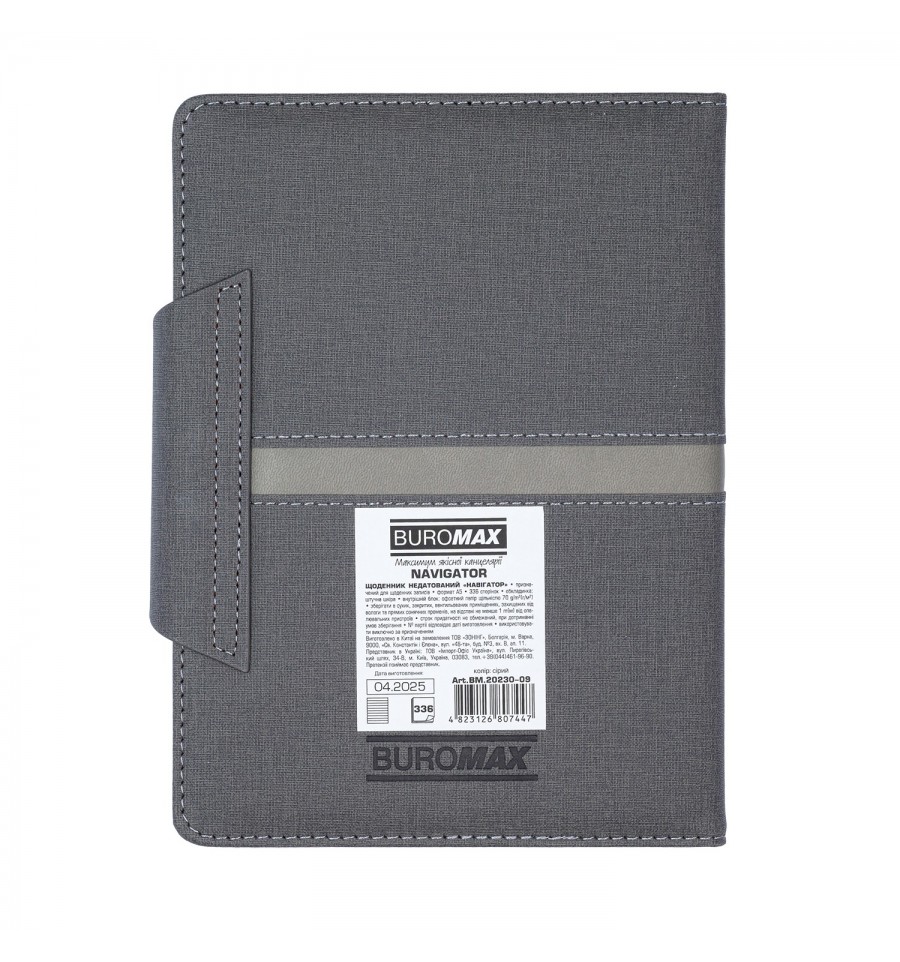 Дневники BUROMAX – это всегда широкий выбор самых разных обложек, фактур и цветов. Мы найдем подход к сердцу каждого покупателя!Жесткий переплет из искусственной кожи дневника NAVIGATOR выполнен из комбинированных материалов, различных фактур и цветов, имеет оформление декоративными швами по периметру обложки и на стыке материалов. Благодаря широкой застежке, ежедневник можно легко и быстро зафиксировать в закрытом состоянии. Дизайн гармонично дополняет тонированный в цвет обложки срез внутреннего блока.Недатированный дневник сохранил преимущества датированного дневника, но вместе с тем не зависит от дат, позволяющих вести записи без хронологии и в произвольном порядке.Формат А5 336 страниц Твердый переплет из искусственной кожи с поролоном Внутренний блок: офсетная бумага кремового цвета плотностью 70 г/м² Закладка-лесе в цвет обложки поможет быстро найти необходимую страницу. Перфорированные уголки листов Карты Украины и Европы на форзацах Индивидуальная упаковка: картонная коробка Структура внутреннего блока:Страница для внесения личной информации Планинг на год Информационно-справочный блок: телефонные коды мобильных операторов и областных центров Украины, буквенные автомобильные коды стран, таблица расстояний между областными центрами Украины, справочник систем измерения, международные знаки соответствия, знаки ухода за одеждой Недатированные страницы с линией в линию имеют строку для надписи даты Алфавитная книга для внесения контактов Дневник BUROMAX формата А5 – это выбор, проверенный временем, самый популярный формат для незаменимого помощника в планировании Вашего рабочего дня!На этой модели дневника возможно тиснение как слепым методом, так и методом фольгирования.