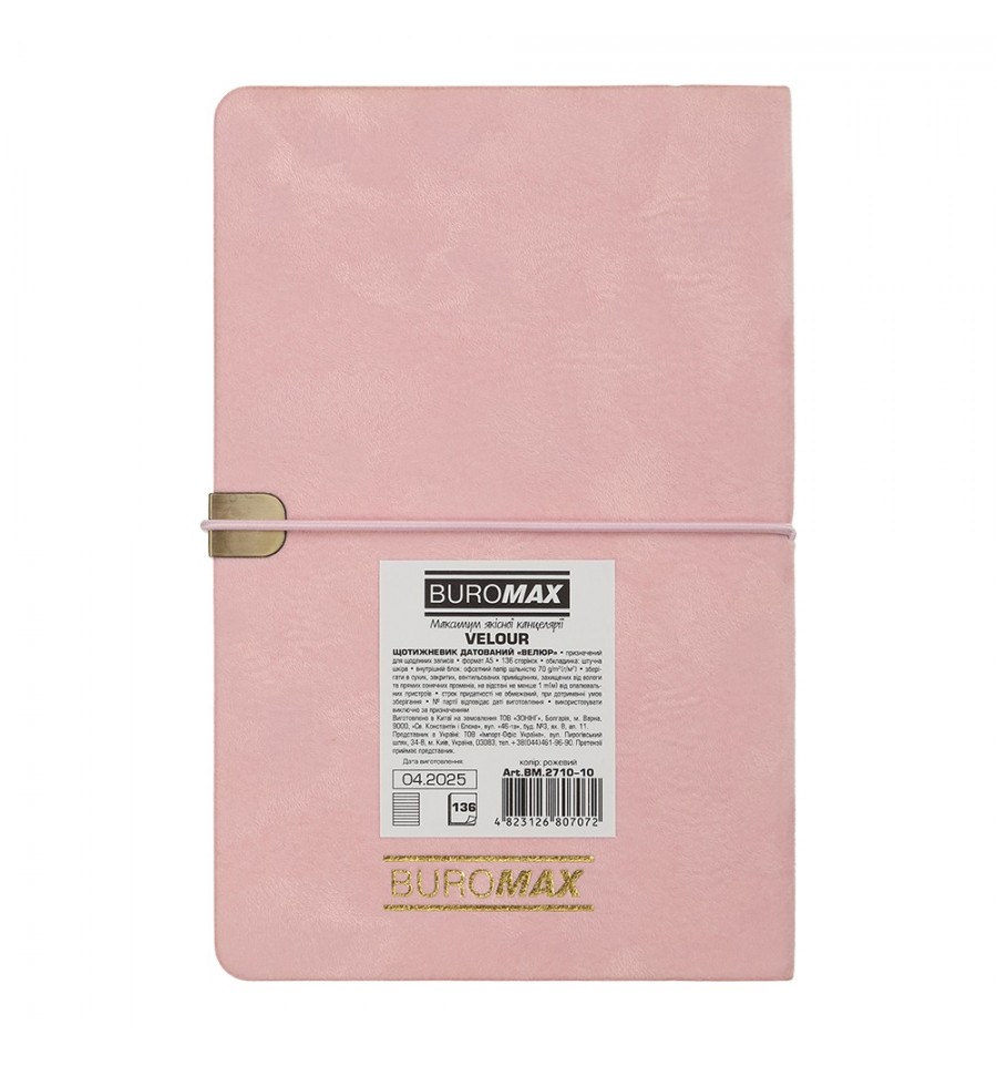 Еженедельники BUROMAX – это удобный аксессуар для еженедельного планирования своей деловой и личной деятельности.Гибкая обложка еженедельника VELOUR выполнена из искусственной кожи с выразительным бархатным покрытием. Две функциональные шильды на лицевой и оборотной стороне обложки с углублениями для поперечной резинки обеспечивают удобную и надежную фиксацию дневника в закрытом состоянии. Дизайн гармонично дополняет и обогащает тонированный серебряным цветом срез внутреннего блока и тиснение серебряной фольгой рока и надписи на лицевой стороне обложки.Формат А5 136 страниц Внутренний блок: офсетная бумага кремового цвета плотностью 70 г/м² Закладка-лесое в цвет обложки Перфорированные уголки Печать блока в 2 цвета: серый и бордовый Два языка блока: украинский, английский Карты Украины и Европы на форзацах Индивидуальная упаковка: картонная коробка Структура внутреннего блока:Лист для внесения личной информации Календари на 2025 – 2028 годы Планинг на 2026 год Информационно-справочный блок: национальные, религиозные, профессиональные праздники и памятные даты, знаки зодиака, телефонные коды мобильных операторов и областных центров Украины, буквенные автомобильные коды стран, таблица расстояний между областными центрами Украины, справочник систем измерения, международные знаки соответствия, знаки ухода за одеждой На одной странице горизонтально размещено три/четыре дня недели (суббота и воскресенье - вертикальное расположение на одной части), с организатором времени от 9:00 до 18:00, указанием месяца, года, дня недели и даты Алфавитная книга для внесения контактов Еженедельник BUROMAX – незаменимый помощник в планировании Вашего рабочего времени!