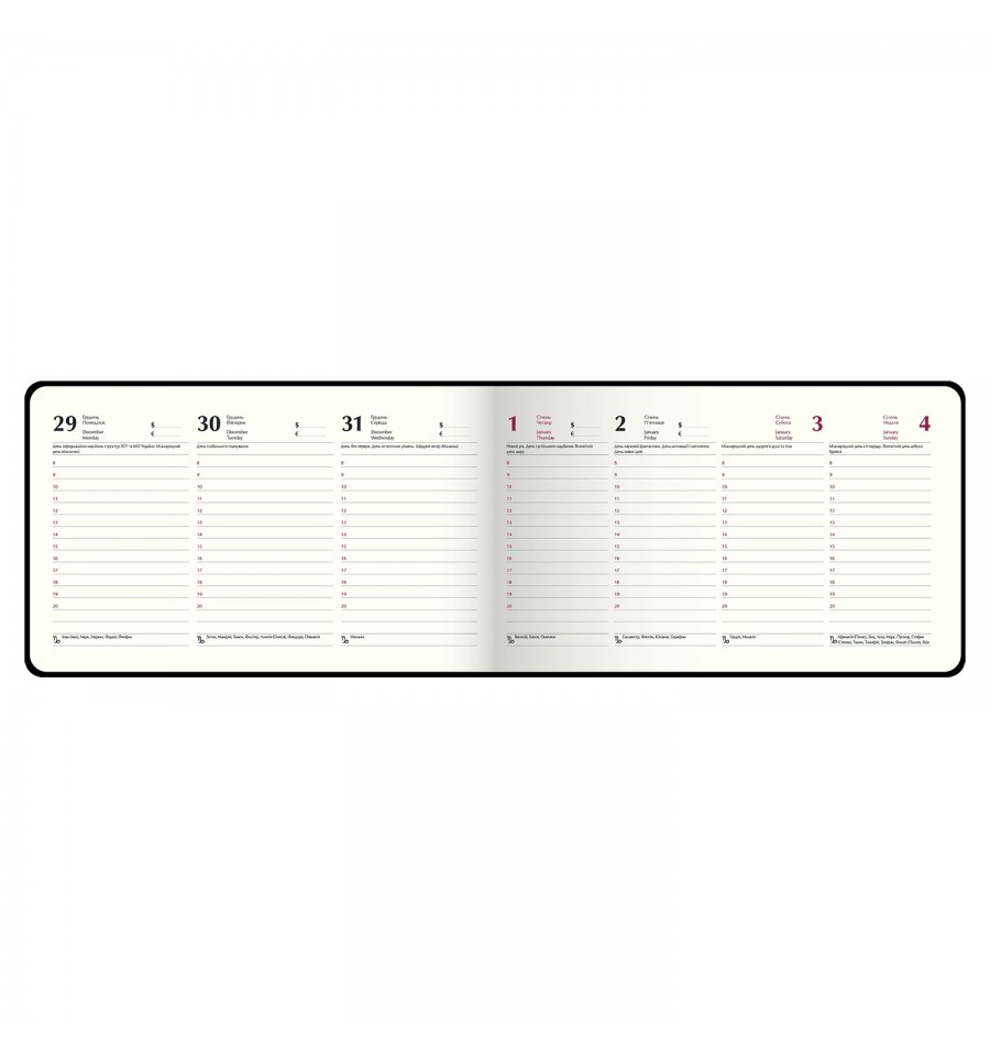 Еженедельники BUROMAX - это удобный формат для еженедельного планирования своих деловых и личных дел.Гибкая обложка из искусственной кожи еженедельника LIGHT MORANDI выполнена под натуральную кожу в легком цвете модной палитры "моранди". На лицевой стороне обложки – слепое тиснение года. Гармонично дополняет дизайн тонированный в цвет обложки срез внутреннего блока. Карманный размер еженедельника делает его постоянным спутником своего владельца, он не займет много места даже в маленькой сумке, может уместиться в карман и всегда будет под рукой.Размер 153х87 мм (карманный) 128 страниц Внутренний блок: офсетная бумага кремового цвета плотностью 70 г/м² Закладка-лесое в цвет обложки Печать блока в 2 цвета: серый и бордовый Два языка блока: украинский, английский Индивидуальная упаковка: картонная коробка Структура внутреннего блока:Страница для внесения личной информации Календари на 2025 – 2027 годы Информационно-справочный блок: национальные, религиозные, профессиональные праздники и памятные даты, знаки зодиака, буквенные автомобильные коды стран, таблица расстояний между областными центрами Украины, справочник систем измерения, международные знаки соответствия, знаки ухода за одеждой На одной странице вертикально размещены три/четыре дня недели, с организатором времени от 8:00 до 20:00, указанием месяца, дня недели и даты, именинников, знака зодиака, праздников и памятных дат Алфавитная книга для внесения контактовЕженедельник BUROMAX – незаменимый помощник в планировании Вашего рабочего времени!