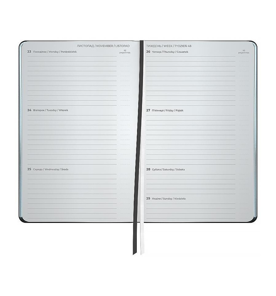 Еженедельник Axent формата А5- из серии City с мягкой обложкой и серебряным срезом. Используется для ежедневных записей, деловых и творческих задач.Мягкая обложка из PU-материала помогает сохранить аккуратный и презентабельный вид в течение длительного времени. Качественная кремовая бумага плотностью 80 г/м2 хорошо впитывает чернила и обеспечивает комфортное письмо. Еженедельник разделен на 2 части – датированный блок в линию для удобной планировки дел и дополнительные страницы в ячейку для ведения личных записей.Внутренний блок на украинском языке. Планер содержит календарь на 2026-2027 год, общее недельное расписание, информацию о праздниках, важные номера телефонов, часовые пояса стран мира, единицы измерения, шкалу температур.Две разноцветные закладки-ляссе позволяют быстро найти и открыть нужные страницы. Содержит 96 листов, размер – 125*195 мм. Карманы на форзаце нет. Нет тесьмы на обложке и петли для ручки.