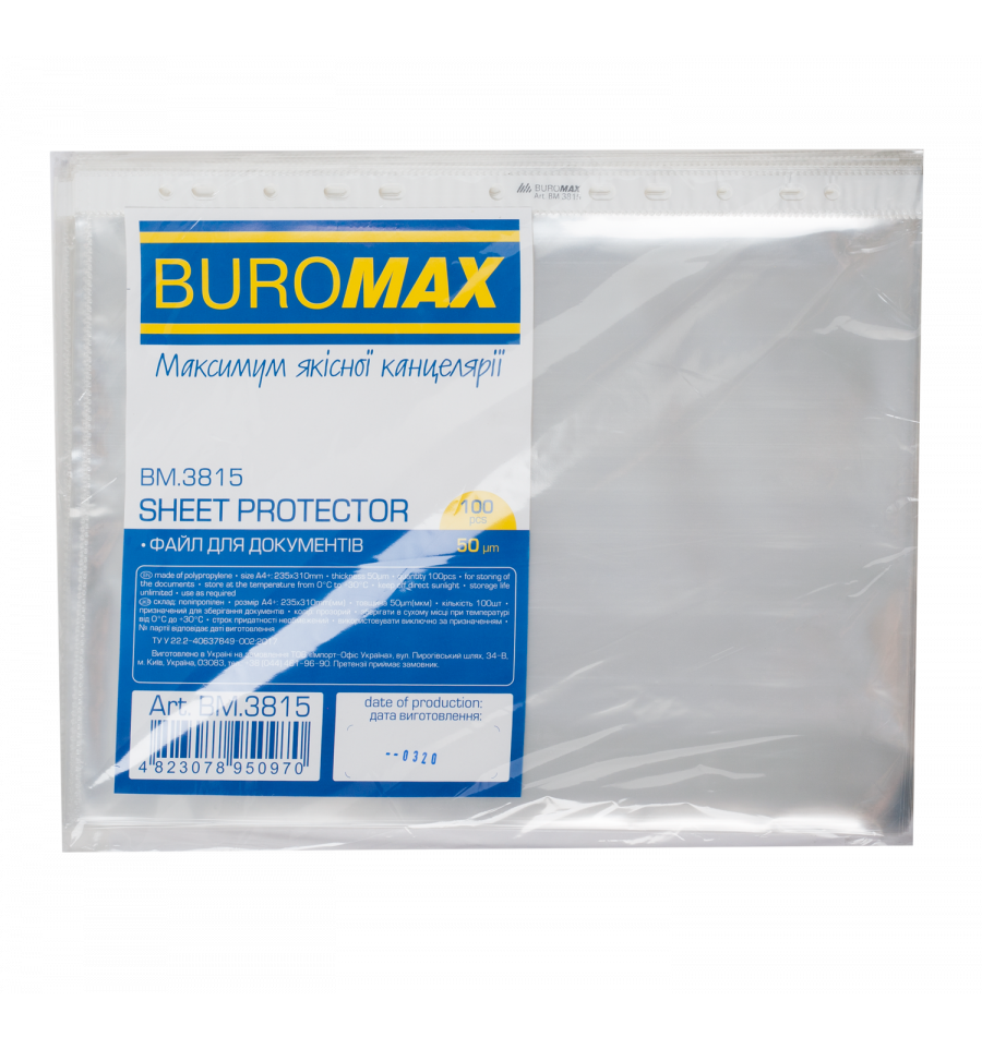 Прозрачные файлы BUROMAX предназначены для хранения и защиты документов. Благодаря боковой европерфорациии на 11 отверстий по левому краю, они могут использоваться для различных видов скоросшивателей и папок. Формат А4+: 235х310 мм (подходит для листов формата А4) Материал: полипропилен Толщина: 50 мкм Европерфорация на 11 отверстий Поверхность: прозрачная глянцевая Вертикальная загрузка листов По 100 шт. в упаковке