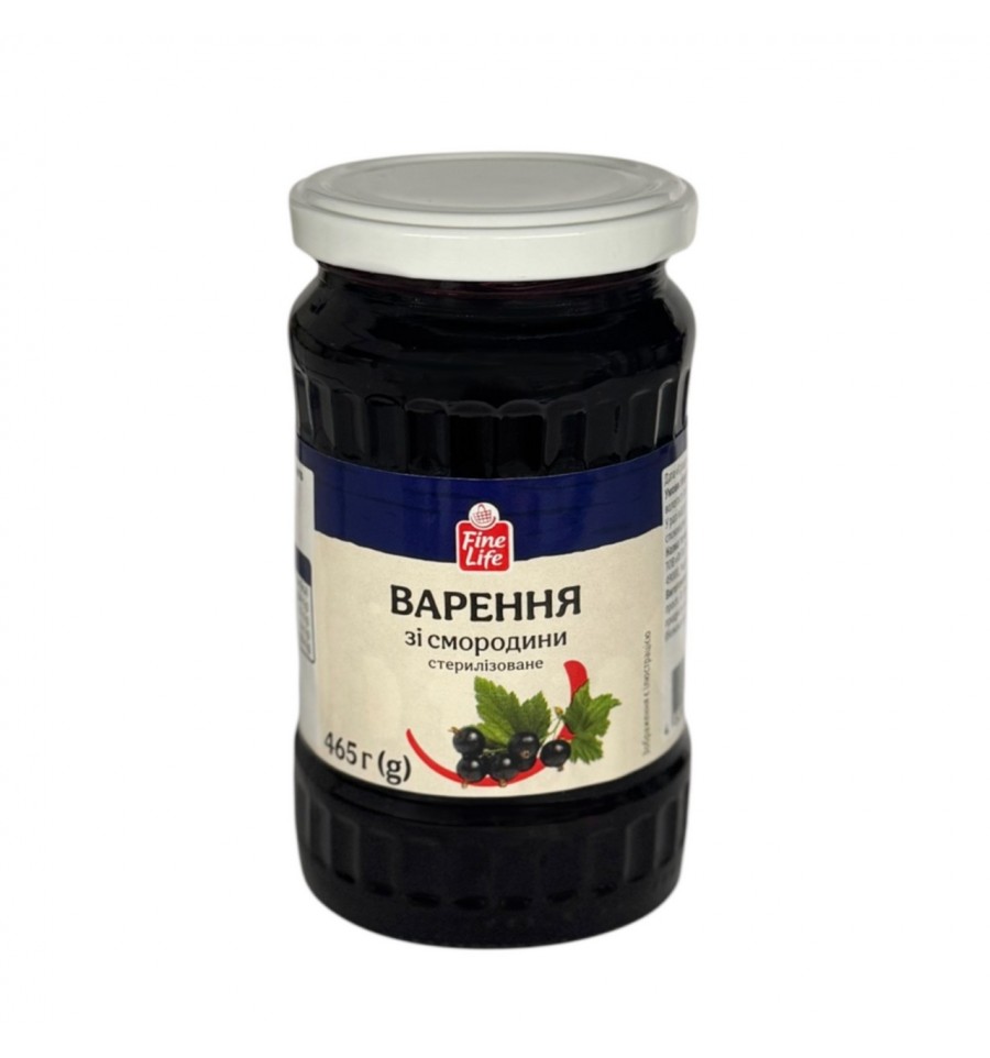 Варенье Fine Life из смородины стерилизованное высший сорт 465г. Состав: сахар, смородина быстрозамороженная 40%. Энергетическая ценность продукта: 1153кДж/100г, 271ккал/100г. Питательная (пищевая) ценность продукта: белки – 0.4г/100г, жиры – 0.2г/100г, насыщенные жиры – 0.04г/100г, углеводы – 67г/100г, из них сахара – 67г/100г, соль – 0.0. Рекомендуемый способ приготовления/употребления: продукт готов к употреблению. В случае отсутствия хлопка при открывании банки продукт потреблять нельзя. Условия хранения: хранить при температуре 0..+25ºC и относительной влажности воздуха не более 75%. Срок годности: 2 года. Страна изготовитель: Украина. Производитель и адрес производителя: ООО "Фита Трейд", просп. Богдана Хмельницкого, 139, г. Днепр, Украина, 49000. Оператор рынка и адрес оператора рынка: ООО "Фита Трейд", просп. Богдана Хмельницкого, 139, г. Днепр, Украина, 49000. Изготовлено по заказу и адресу заказчика: ООО Метро Кеш энд Кери Украина, просп. П. Григоренко, 43, г. Киев, Украина, 02140. Масса нетто: 465г.