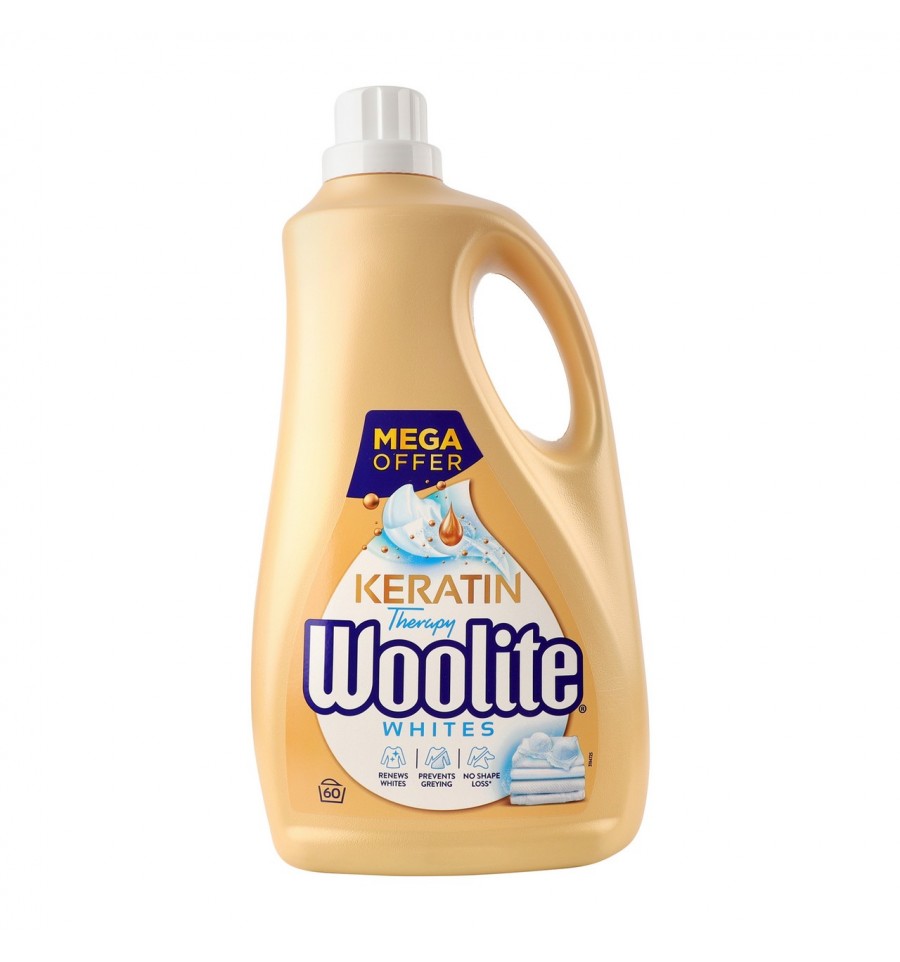 Средство для стирки Woolite жидкое для светлых и белых тканей с кератином 3.6л. Состав: от 5% до 15%: анионные ПАВ, менее 5%: мыло, неионогенные ПАВ, оптические отбеливатели, консерванты (бензизотиазолинон, метилизотиазолинон), ароматизаторы (содержит цитронелол, линалоол). Рекомендуемые способы применения/применения: инструкция по использованию: для всех степеней жесткости воды. Эффективен для стирки при температурах 30°C/40°C/60°C. 1 мерный колпачок = 120мл. Для стирки в стиральной машине: погрузка белья 2.5-3кг: легкое загрязнение 60мл, среднее загрязнение 90мл, сильное загрязнение 120мл. Если загрузку белья 4-5 кг добавьте еще 20 мл стирального средства до дозировки указанного для 2.5-3 кг в соответствии со степенью загрязнения. Для ручной стирки: используйте 40 мл стирального средства на 5 л воды. Всегда следуйте инструкциям по использованию, предоставленным производителями одежды, обращайте особое внимание на температуру стирки. Первый раз постирайте новую одежду отдельно. Не стирать темную и светлую одежду вместе. При стирке в стиральной машине залейте стиральное средство в дозировочный отсек или наполните отдельную емкость для дозировки и поместите ее в бак машины. Меры предосторожности: тщательно вымойте руки после использования. Содержит 2-метилизотиазол-3(2H)-он 613-326-00-9, спирты, C12-14, этоксилированные CAS 68439-50-9, натрий C10-13 алкил бензенсульфонат CAS 68411-30-3, спирты соли натриевые CAS 68891-38-3. Может вызвать аллергическую реакцию на коже. Вызывает сильное раздражение глаз. Хранить в недоступном для детей месте. Надеть защитные перчатки. При попадании на кожу: промыть большим количеством воды. При попадании в глаза: осторожно промыть водой в течение нескольких минут. Снять контактные линзы, если они используются и легко снимаются. Продолжить промывание. Если раздражение рака глаз продолжается: пройти медицинское освидетельствование. При проглатывании: обратиться за первой медицинской помощью или к врачу в случае плохого самочувствия. Утилизировать содержимое, упаковку в соответствии с национальным законодательством. Срок годности: 2 года. Страна изготовитель: Польша. Производитель и адрес производителя: Reckitt Benckiser Production Sp. z.o.o., ул. Окунин, 1, Новый-Двор-Мазовецкий, Польша, 05-100. Импортер и адрес импортера: ООО Реккитт Бенкизер Хайджин Хоум Украина, просп. Степана Бандеры, дом. 28А, лит. Г, г. Киев, Украина, 04073. Объем: 3.6л.