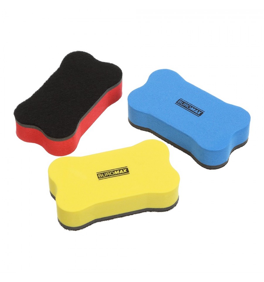 Губка магнитная от BUROMAX – для сухого стирания записей маркером на магнитных досках. Могут применять образовательные учреждения, офисы, образовательные центры, предприятия и организации, использующие маркерные доски. • эргономичная удобная форма • изготовлена ​​из легкого и приятного на ощупь EVA-материала • фетровая рабочая поверхность • встроенный магнит для крепления на металлической поверхности • маленький размер не мешает демонстрации и восприятию информации • цвет ассорти: синий, красный, желтый Технические характеристики • тип – губка с магнитом • размер – 70х40х18 мм Состав этиленвинилацетат, фетр