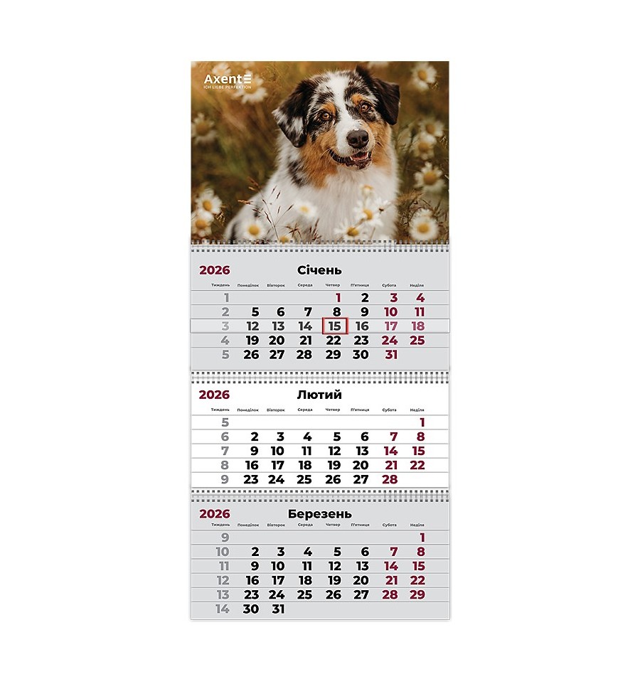 Календарь настенный квартальный Axent 8801-26-16-A на 2026 год – незаменимый помощник по планированию повседневных задач и подготовке отчетности. С ним вы всегда будете ориентироваться в датах, рабочих и выходных днях; оценивать продолжительность задач и планировать важные события.Дизайн квартального календаря – максимально функциональный и эстетичный. Имеет плотное картонное основание. Визуальный охват трех месяцев – самое удобное для работы. Имеет перфорированный блок с 12 листами. Пружинный крепеж – практичный и надежный. Листы легко пролистываются и при необходимости аккуратно вырываются.Календарь с бегунком не даст потеряться в днях. Высококачественная полноцветная печать идеально передает всю красоту изображения. На гладких белых листах удобно отмечать даты и делать отметки. Имеет большие цифры и разборчивый шрифт с нумерацией недель.Календари Axent – стильное украшение офиса. Индивидуальная упаковка защищает каждый календарь и подчеркивает его статусность.Особенности:Настенный квартальный календарь на 1 пружину. На одном листе 3 месяца, размер изделия 297*630 мм. Размер постера 297*210 мм, изготовлен из высококачественного картона. Календарный блок состоит из 12 отрывных листов размером 297*420 мм, изготовленных из мелованной бумаги. Календарная сеть на украинском языке. Указатель дат с бегунком и крепежное отверстие. Каждый календарь в индивидуальной упаковке.