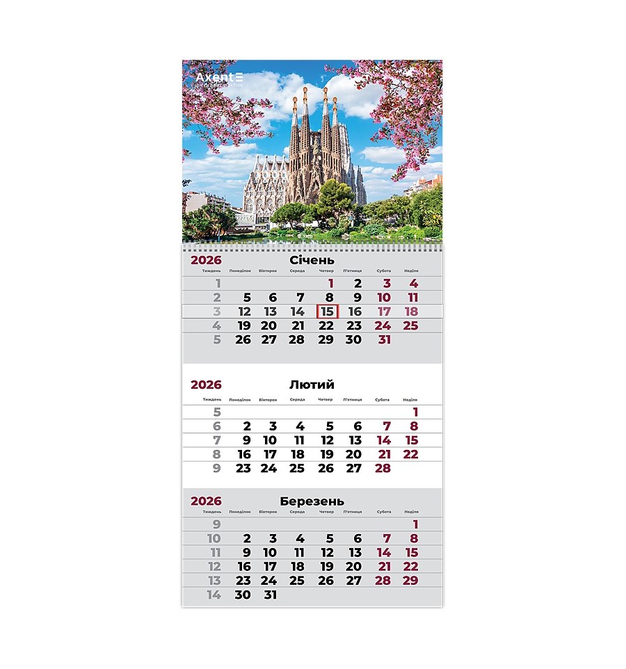Календарь настенный квартальный Axent 8801-26-12-A на 2026 год – незаменимый помощник по планированию повседневных задач и подготовке отчетности. С ним вы всегда будете ориентироваться в датах, рабочих и выходных днях; оценивать продолжительность задач и планировать важные события.Дизайн квартального календаря – максимально функциональный и эстетичный. Имеет плотное картонное основание. Визуальный охват трех месяцев – самое удобное для работы. Имеет перфорированный блок с 12 листами. Пружинный крепеж – практичный и надежный. Листы легко пролистываются и при необходимости аккуратно вырываются.Календарь с бегунком не даст потеряться в днях. Высококачественная полноцветная печать идеально передает всю красоту изображения. На гладких белых листах удобно отмечать даты и делать отметки. Имеет большие цифры и разборчивый шрифт с нумерацией недель.Календари Axent – ​​стильное украшение офиса. Индивидуальная упаковка защищает каждый календарь и подчеркивает его статусность.Особенности:Настенный квартальный календарь на 1 пружину. На одном листе 3 месяца, размер изделия 297*630 мм. Размер постера 297*210 мм, изготовлен из высококачественного картона. Календарный блок состоит из 12 отрывных листов размером 297*420 мм, изготовленных из мелованной бумаги. Календарная сеть на украинском языке. Указатель дат с бегунком и крепежное отверстие. Каждый календарь в индивидуальной упаковке.