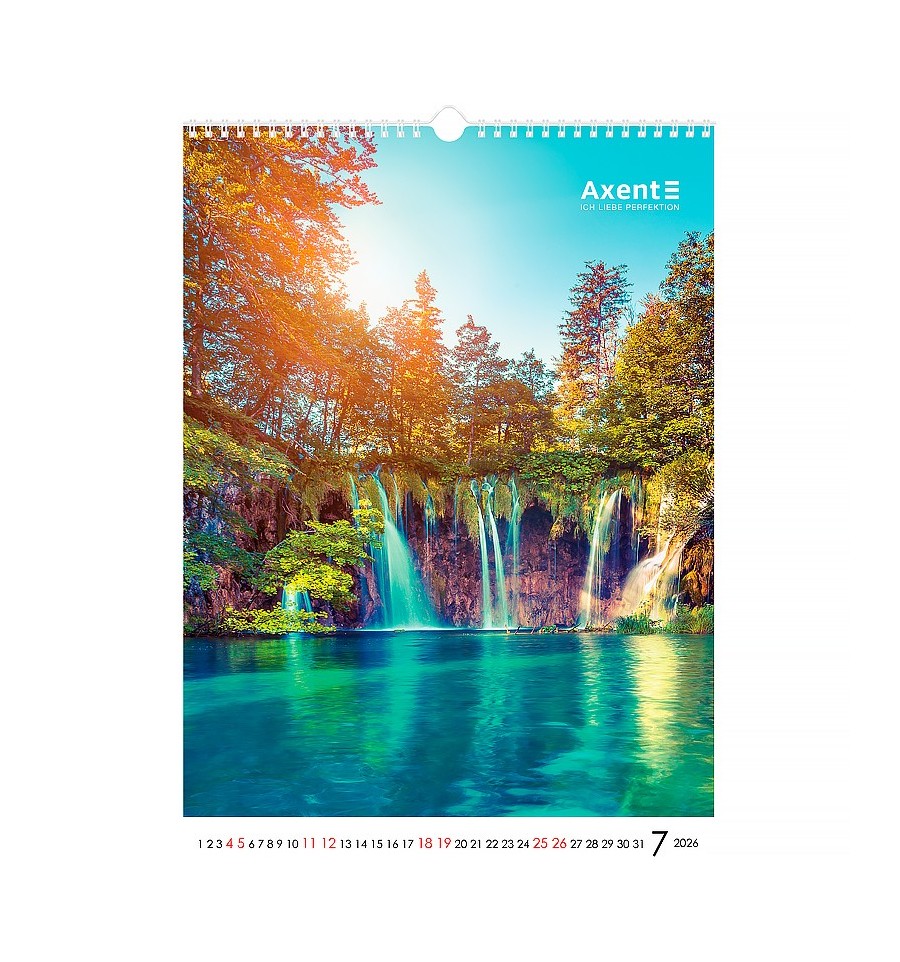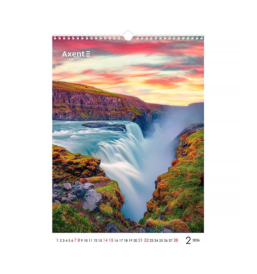 Календарь настенный Axent 8804-26-2-A на 2026 год поражает своим уникальным дизайном и идеальным качеством. Изюминкой этой модели есть эффектная подборка широкоформатных постеров и лаконичный минимализм календарной сетки.Оригинальный календарь Axent станет эффектным украшением офиса и будет ежедневно напоминать вам о важных датах. Его непревзойденный дизайн с большими высококачественными фотографиями порадует самых требовательных эстетов и будет вдохновлять успешное планирование дел.Каждый месяц вас будут вдохновлять разные композиции, объединенные общим стилем и тематикой. Все изображения максимально четкие и выразительные.Календарная сетка – лаконичная и изысканная, представлена рядом линейных чисел с цветовой подсветкой выходных дней. Шрифт – стильный, четкий и разборчивый.Этот календарь подчеркнет ваш изысканный вкус, а также целый год будет дарить положительные эмоции и мотивацию для успешного планирования всех дел.Особенности:настенный опрокидывающийся календарь на 2026 год; широкий формат А3 (297х420 мм); содержит 13 листов высококачественной мелованной бумаги плотностью 200 г/м2; оригинальный дизайн с большим постером и минималистичным украшением календарного блока; выходные обозначены красным цветом; крепление – пружина с изгибом под гвоздь; каждый календарь – в индивидуальной упаковке.