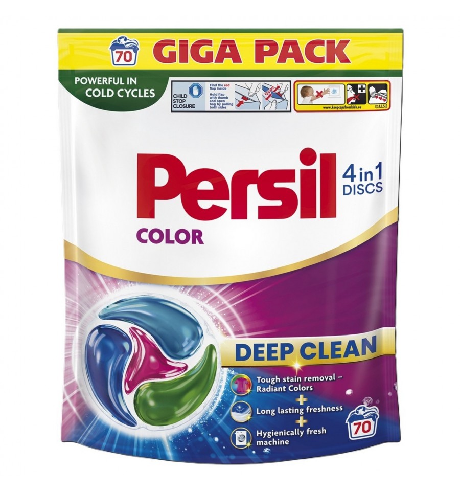 Диски Персил Колор 70 циклов стирки. Persil Диски Deep Clean 4в1 для цветных вещей – безупречная чистота одежды и гигиеническая свежесть для стиральной машины. Даже после стирки из стиральной машины может доноситься неприятный запах, поскольку стойкие пятна обладают свойством накапливаться внутри нее. Для решения этой проблемы предлагаем использовать Persil Discs Deep Clean. Это не просто пятновыводитель, а мощные диски 4 в 1, которые теперь имеют новую формулу, обеспечивающую глубокую очистку белья и помогающую вашей стиральной машине оставаться гигиенически чистой. Уникальная формула проникает глубоко в волокна, расщепляя стойкие пятна и выводя их. Диски Persil не только обеспечивают чистоту одежды, но проникают еще глубже в стиральную машину, чтобы эффективно устранить неприятные запахи. Мощный концентрат в форме диска с четырьмя камерами Persil теперь в компактном виде обеспечивает безупречный результат и меньшее влияние на окружающую среду благодаря уменьшению количества необходимых материалов для производства. Шаг навстречу более чистой окружающей среде: Настойчиво борется с пятнами, бережно относится к планете. Эффективный при низких температурах, удаляет пятна уже от 20 ° C даже при полной загрузке стиральной машины. Преимущества продукта: Глубокая очистка белья и помогает стиральной машине оставаться гигиенически чистой. Глубоко проникает в машину, чтобы устранить неприятные запахи. Компактизированные диски: меньше воды, меньше пленки, меньше пластика. Диски для стирки эффективны даже при полной загрузке белья. Эффективно удаляют пятна в холодной воде от 20C. Способ использования: Оболочка (пленка) диска 100% растворяется в воде. Не сжимайте, не кусайте и не разрезайте диски. Коснитесь только сухими руками, чтобы избежать риска протекания. Сначала положите диск Persil в барабан стиральной машины, затем загрузите белье и начните стирку. Используйте 1 диск для 1 стирки в стиральной машине. Для очень грязного белья или при загрузке более 4,5 кг используйте 2 диска. Подходит для воды любой жесткости. Эффективная стирка при температуре от 20°C до 60°C. Особенности: Для стирки цветных изделий из хлопчатобумажных, льняных, синтетических и тканей из смешанных волокон (кроме шерсти и шелка) в стиральных машинах-автоматах в воде любой жесткости. Следуйте рекомендациям на ярлыках одежды и инструкции к стиральной машине при выборе режима стирки и температуры. Белое белье стирайте отдельно от цветного. Эффективная стирка при температуре от 20°C до 60°C. Храните при температуре от +0 до +35°C. Держите упаковку закрытой после использования. Срок годности: 18 месяцев с даты изготовления. Дата изготовления смотрите на упаковке. По истечении срока годности утилизировать как бытовые отходы. Не использовать упаковку для хранения других продуктов. Состав: 15 - 30 % анионные ПАВ, неионогенные ПАВ; 5 – 15 % мыло; энзимы, ароматизаторы (Тетраметилацетилоктагидронафталины, Гексилциннамаль, Альфа-изометил ионон, Эфирное масло Лаванды/Экстракт, Линалилацетат, Эфирное масло пачули, Линалоол). Срок хранения: 547 дней. Хранить при температуре от +5°С до +40°С. Производитель: "Хенкель Сербия д.о.о." Поставщик: Общество с ограниченной ответственностью "Хенкель-Украина". Адрес производителя: "Хенкель Сербия д.о.о.", Булевар Ослобождения 383, 11000 Белград, Сербия. Страна: Сербия. Масса нетто: 1,155 кг
