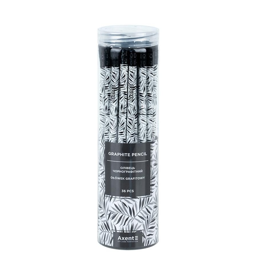 Карандаш графитный Axent 9009/36-19-A, HB, туба, Black Leaves