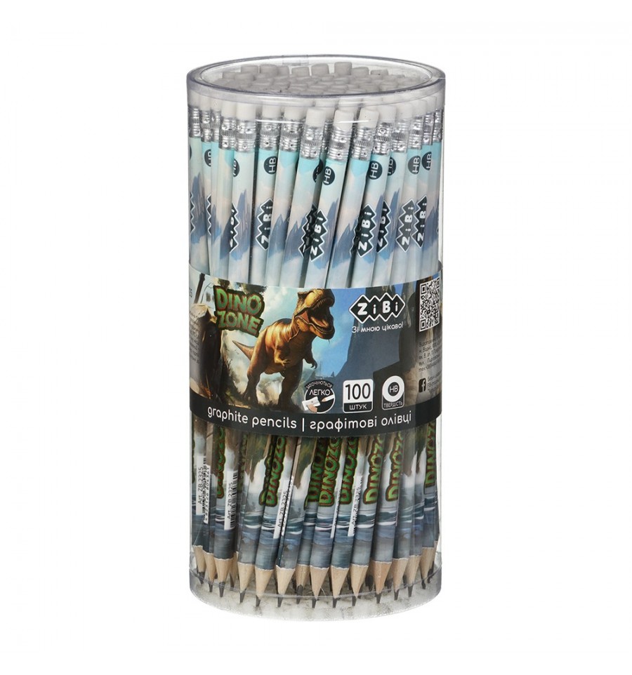 Карандаши чернографитовые серии DINO от ZiBi с индивидуальным, стильным дизайном и глянцевым лаковым покрытием корпуса. Для письма, рисования и чертежа в школе, кружках и дома.твердость НВ заточены деревянный корпус круглой формы длина 185 мм диаметр грифеля 2 мм легко и быстро затачиваются с резинкой упаковка: 100 шт. одного дизайна в пластиковой тубе