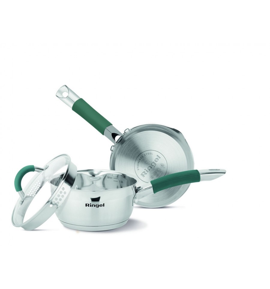 Ковш с крышкой Ringel Expert (16 см/1.6л). Высококачественная нержавеющая сталь. Клепочное крепление ручек. Мирная шкала. Сатиновая полировка. Капсульное дно. Стеклянная крышка. Подходит для всех типов плит. Производитель, разработчик дизайна и контроль качества: РЕСК Реньюэбл Энерджи Сервис энд Компонентс ГмбХ, Шведенплатц 2/22, 1010 Вена, Австрия (AT). Импортер: ООО «ЮК ДИСТРИБЬЮШН», ул. Дорогожицкая, 1, 04112, Киев, Украина. Страна происхождения товара: Китай. Материал: нержавеющая сталь, стекло. Условия хранения: не требует особых условий хранения. Срок годности: неограниченный. Номер партии идентифицируется по дате производства. Не подлежит обязательному декларированию