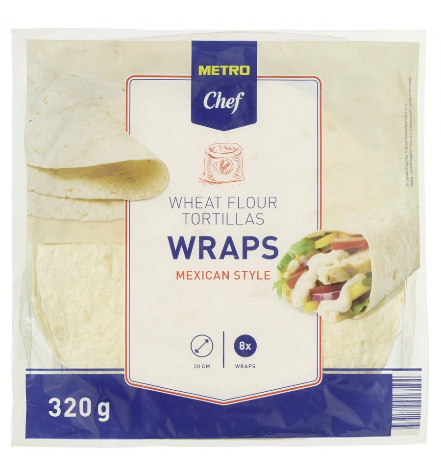 Тортильи – лепешки из пшеничной и кукурузной муки, предварительно выпеченные. Состав: пшеничная мука (51%), вода, кукурузная мука (15%), рапсовое масло, пшеничная клейковина, стабилизатор: глицерин; регулятор кислотности: яблочная кислота; эмульгатор: моно- и диглицериды жирных кислот; соль, разрыхлитель: карбонаты натрия; декстроза, консерванты: пропионат кальция, сорбат калия; улучшитель муки: L-цистеин. Энергетическая ценность на 100 г: 1298 кДж/308 ккал, жиры - 6,7 г, из них насыщены - 1,8 г, углеводы - 51 г, из них сахара - 4,9 г, белки - 10 г, соль - 1,1 г. Способ приготовления: Перед использованием разогрейте лепешки в микроволновке в течение 15 секунд (мощность 650 Вт), или на горячей сковороде в течение 10 секунд с каждой стороны, или в разогретой духовке до 150 °C в течение 1 минуты. Это обеспечивает гибкость тортильи. Хранить в сухом месте при температуре 15–25 °C; после открытия хранить в закрытом контейнере при температуре 15–25 °C и применить в течение 4 дней. Производитель: Dijo Baking Sp. z o.o., Zabrodzie 28, 52-351 Вроцлав, Польша. Импортер: ООО "МЕТРО Кэш энд Керри Украина", просп. Григоренко, 43, г. Киев, 02140, Украина. По вопросам продукта обращайтесь по тел. горячей линии импортера: 0800 501 401 (бесплатно в пределах Украины). Изготовлен в Польше. Масса нетто: 320г.