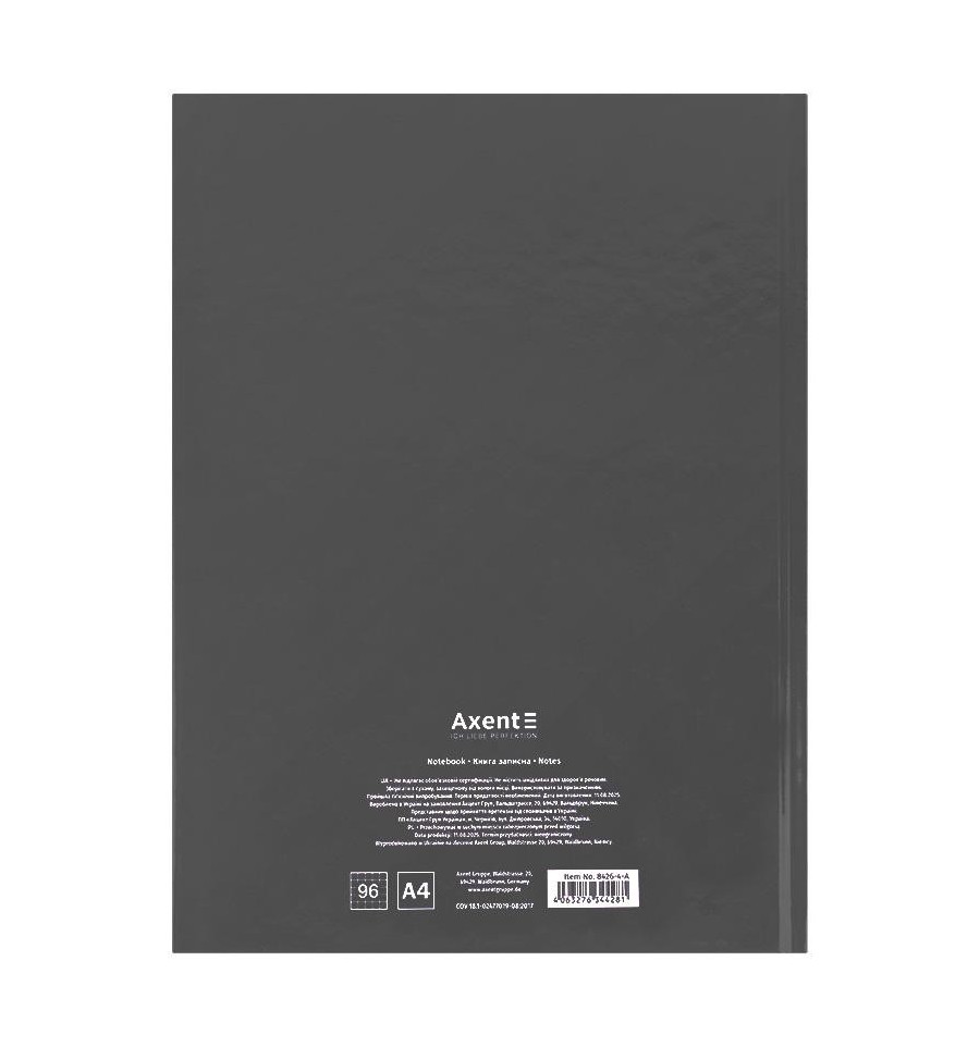 Книга записная Axent One color 8426-4-A, А4- 203*273 мм, 96 листов, клетка, серая