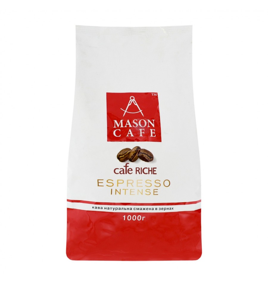 Кофе Mason Cafe Espresso Intense натурально жареный в зернах 1000г. Состав: кофе натурально жареного Робуста. Питательная (пищевая) ценность на 100г продукта: белки – 13.9г, жиры – 14.4г, углеводы – 4.1г. Калорийность на 100г продукта: 223ккал/934кДж. Условия хранения: хранить в сухих, чистых помещениях при относительной влажности воздуха, не превышающей 75%. Срок годности: 12 месяцев. Страна изготовитель: Украина. Производитель, адрес мощностей производства: ООО "Реч Кофе", ул. Заветная, 1, г. Львов, Украина, 79019. Содержимое ГМО: не содержит указанного вещества. Масса нетто: 1000г.