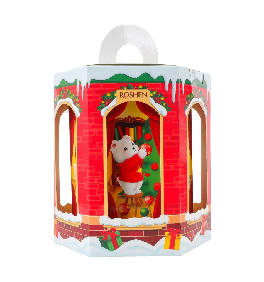 Набор подарочный Roshen Веселый праздник 458г. Состав: сахар, патока, масла растительные (неподрогенизированная пальмовая, полностью гидрогенизированная пальмоядровая, негидрогенизированная ши, негидрогенизированная пальмоядровая, негидрогенизированная подсолнечная, неподрогенизированная кокосовая), ядра бобов арахиса жареные, (молоко обезжиренное сгущенное, сахар, неподрогенизированное пальмовое масло, лактоза), молоко сухое цельное, какао тертое, глюкозно-фруктозный сироп, молоко сухое обезжиренное, какао-масло, сывороточный пермеат сухой (из молока), какао-порошок сироп, ядра орехов фундука жареные, сливки молочные сухие, кокосовая стружка жареная, регуляторы кислотности (кислота молочная, кислота лимонная, Е325, Е331), эмульгаторы (лецитины (содержит сою), Е471, Е472с, Е473, Еки7 кукурузное, сахар, соль), желирующий агент каррагинан, соль, белок яичный сухой, глюкоза, ароматизаторы, бренди, разрыхлители (гидрокарбонат натрия, гидрокарбонат аммония), сок яблочный концентрированный, крахмал, красители (Е100, Е1 Е160а, Е160c, Е163), спирт, йогурт (из молока), модифицированный крахмал, ядра миндаля жареные, глазующий агент Е901, консервант сорбат калия. Энергетическая ценность продукта: 2001кДж/100г, 477ккал/100г. Питательная (пищевая) ценность продукта: белки – 5.1г/100г, жиры – 20.5г/100г, насыщенные жиры – 11.6г/100г, углеводы – 67г/100г, из них сахара – 52г/100г, соль – 0. Условия хранения: хранить при температуре +18 (+/-3)ºC и относительной влажности воздуха не более 75%. Срок годности: 1 год. Страна изготовитель: Украина. Производитель и адрес производителя: ГП УК Рошен, просп. Науки, 1, κορп. 1, г. Киев, Украина, 03039. Количество: 29шт. Масса нетто: 350г.