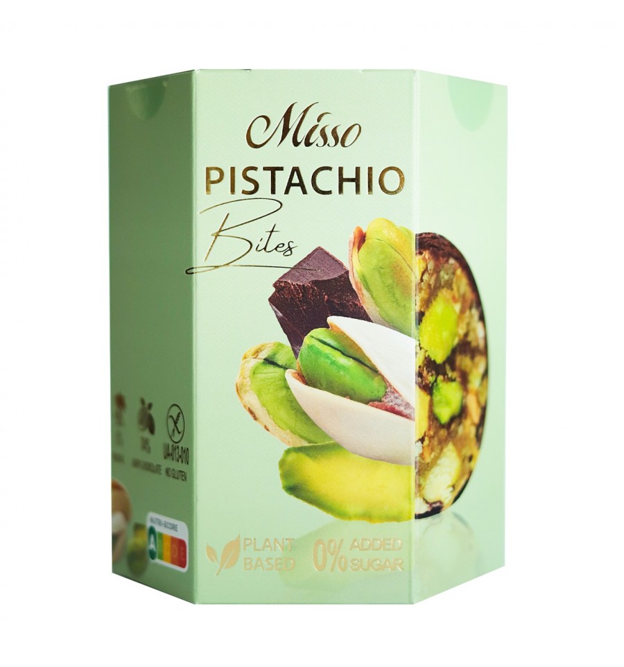 Конфета Misso Фисташкова в шоколаде 180г. Минимальное содержание какао-продуктов в шоколадной массе – 74%. Состав: фисташки (ядро) жареные 45%, сироп цикория 29%, шоколадная масса черная с подсластителем 25% (какао тертое, наполнитель (пищевые волокна), какао-масло, какао – порошок с обезжиренным содержанием жира 10-1 гликозиды), эмульгатор соевый лецитин, ароматизатор ванилин), миндалевая крошка жареная 1%. Аллергены: Орехи и Соя. Энергетическая ценность на 100г продукта: 347 ккал/1452 кДж, жиры – 20 г, насыщенные жиры – 2.5 г, углеводы – 7.4 г, сахара – 3.5 г, белки – 8.7 г, соль – 0,01 г. Срок годности. Хранить при температуре +18°C и относительной влажности воздуха не более 75%. Не подвергать попаданию прямых солнечных лучей. Производитель – ООО "Элитфуд". Адрес производителя: 08130, Киевская обл., Бучанский р-н, с. Петропавловская Борщаговка, ул. Большая кольцевая 4М. Страна: Украина. Масса нетто: 202 г.