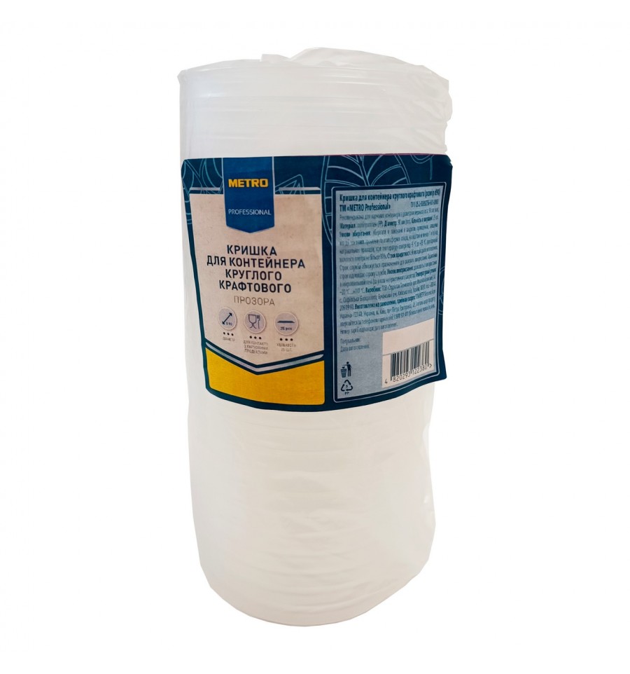 Крышка для контейнера Metro Professional круглого крафтового d90 25шт/уп. Состав: полипропилен (РР). Рекомендуемые способы применения/применения: разрешается использование в микроволновке (при негерметичном закрытии). При относительной влажности воздуха не более 80%. Меры предосторожности: хранить в упаковке на расстоянии не менее 1м от нагревательных приборов. Срок службы ограничивается назначением разового использования. Страна изготовитель: Украина. Производитель и адрес производителя: ООО Студиопак Технологии, ул. Ольги Кобылянской, 1А, с. Софиевская Борщаговка, Бучанский р-н, Киевская обл., Украина, 08131. Количество: 25шт.