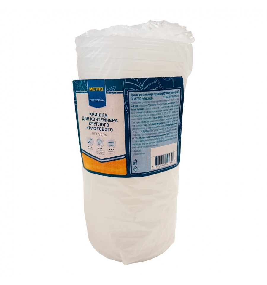 Крышка для контейнера Metro Professional круглого крафтового d97 25шт/уп. Состав: полипропилен (РР). Рекомендуемые способы применения/применения: разрешается использование в микроволновке (при негерметичном закрытии). При относительной влажности воздуха не более 80%. Меры предосторожности: хранить в упаковке на расстоянии не менее 1м от нагревательных приборов. Срок службы ограничивается назначением разового использования. Страна изготовитель: Украина. Производитель и адрес производителя: ООО Студиопак Технологии, ул. Ольги Кобылянской, 1А, с. Софиевская Борщаговка, Бучанский р-н, Киевская обл., Украина, 08131. Количество: 25шт.