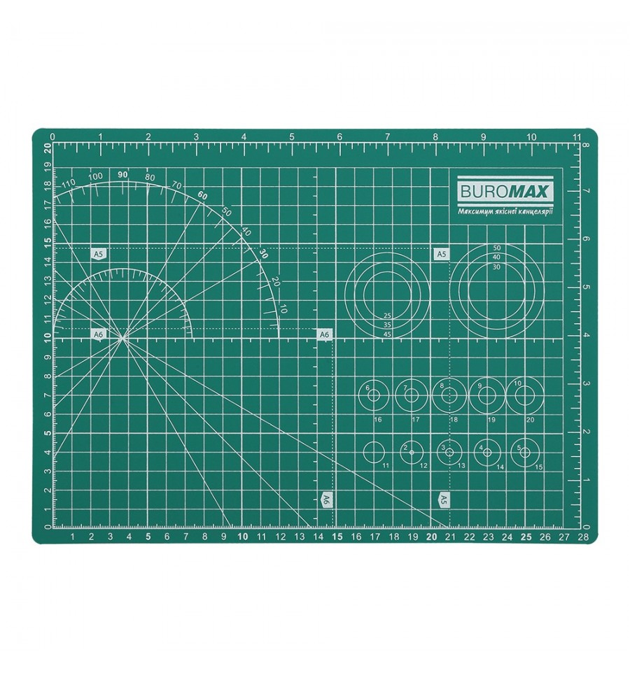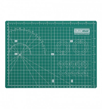 Самовосстанавливающийся коврик для резки от BUROMAX – незаменимый рабочий аксессуар для всех, кто имеет дело с разрезанием разнообразных материалов: бумаги, картона, пластика, кожи, ткани. Такие коврики пригодятся рукодельницам, дизайнерам, авторам проектов из тканей, кожи, бумаги, пленки. Также эти коврики активно используются в производственном дизайне, в мебельном производстве, рекламными агентствами. Кроме этого, коврик нужен всем, кто дома занимается творчеством с детьми или персональным техническим творчеством. А для тех, кто освещает эту деятельность в персональном блоге, коврик станет еще и незаменимым фоном для фото- и видеоконтента.Самовосстанавливающийся коврик для резки BUROMAX выполняет сразу несколько важных функций: защищает рабочую поверхность при разрезании защищает рабочий инструмент (нож для резки) от затупления обеспечивает четкий и ровный разрез при отсутствии скольжения инструмента по поверхности самовосстанавливается при разрезании - края пореза стягиваются и в дальнейшем образуют плотную поверхность для многократного дальнейшего использованияпятислойный – более прочный и долговечный, имеет жесткий внутренний слой формат А4 (размер 30 х 22 см) толщина 3 мм изготовлен из поливинилхлорида имеет двустороннюю разметку (сантиметровую, миллиметровую, дюймовую, разметку по стандартным форматам, радиальную разметку для измерения углов), что повышает удобство использования упаковка: прозрачный пакет