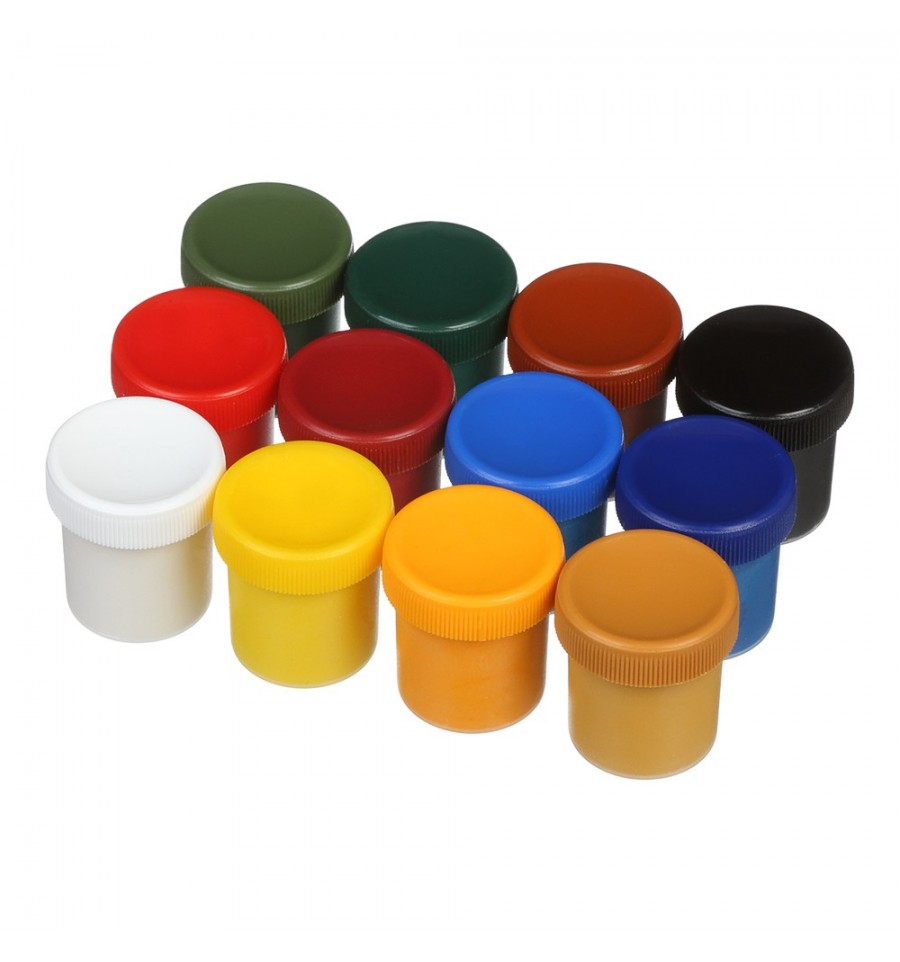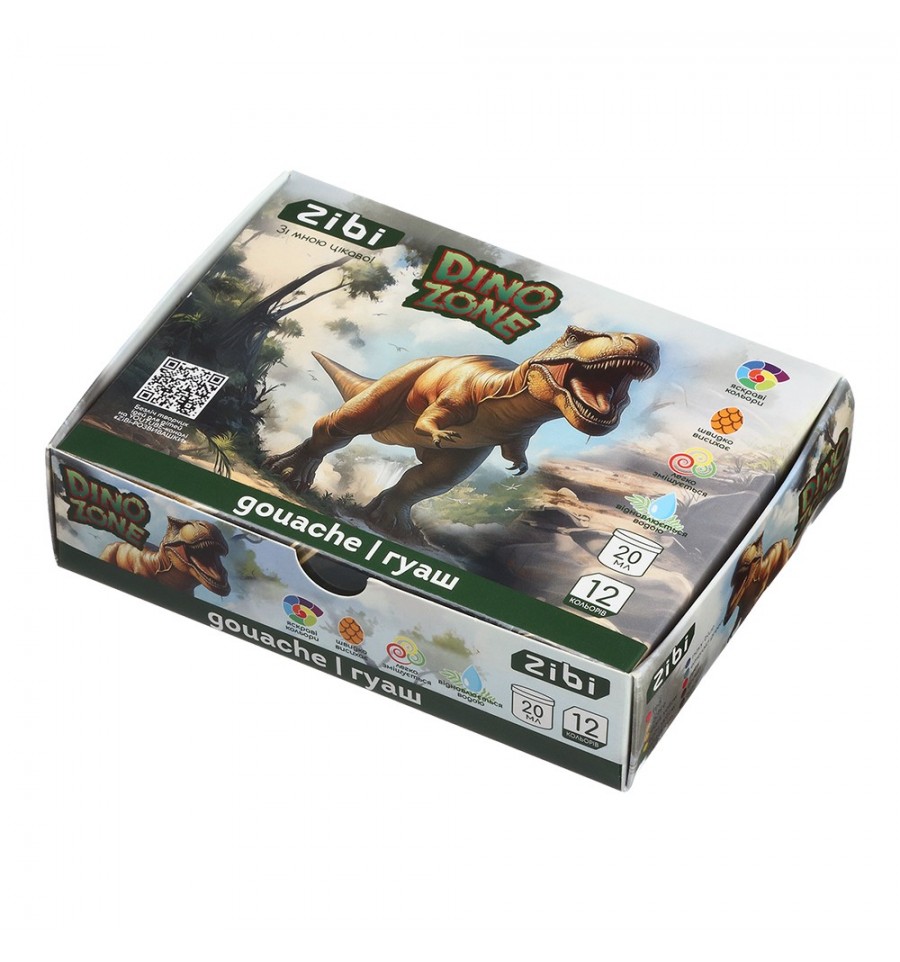 Гуашь серии DINO от ZiBi – это краски для рисования на бумаге, картоне и дереве. Набор гуашевых красок можно использовать для занятий в саду, школе, художественных студиях и кружках. Рисование такими красками отлично развивает мелкую моторику, фантазию и творческий потенциал у детей.12 чистых насыщенных разнообразных цветов объем краски одного цвета в баночке 20 мл классический рецепт непрозрачные, перекрывающие предыдущие слои имеют хорошую покровную способность и насыщенный однородный цвет после нанесения. быстро высыхают, приобретая матовую поверхность цвета смещаются между собой, образуя новые оттенки восстанавливаются методом перемешивания и добавлением воды упаковка: коробка из плотного ламинированного картона