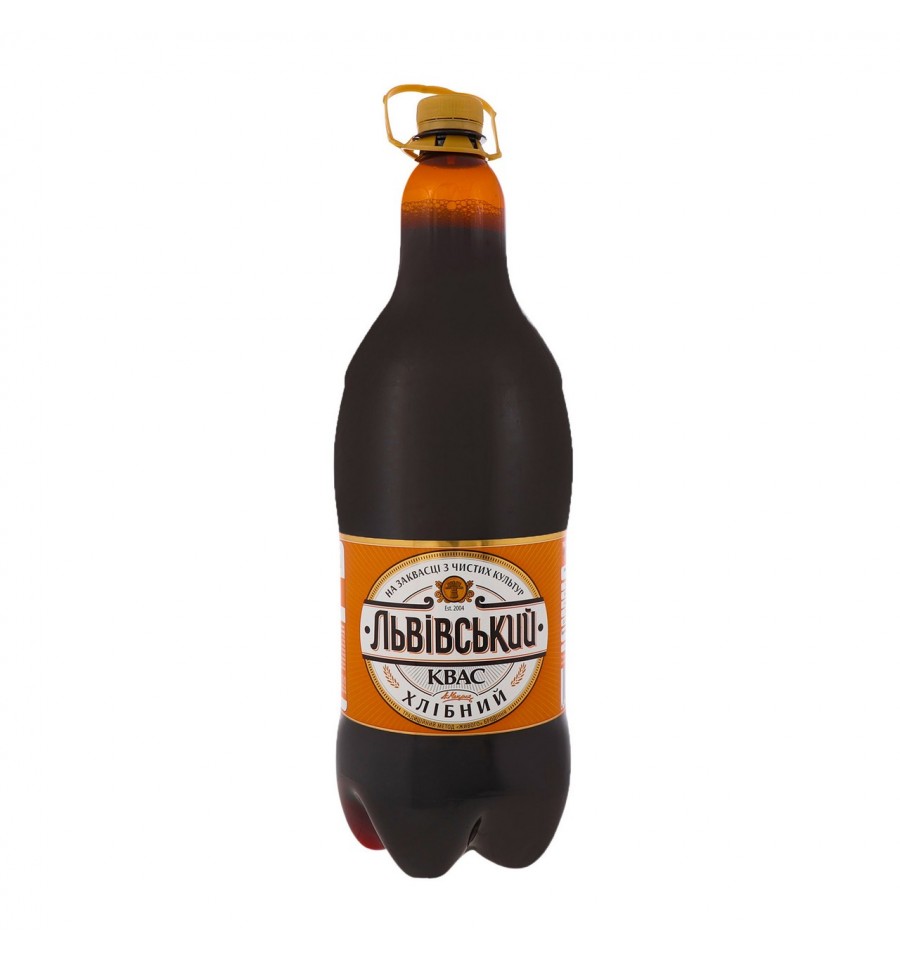 Напиток брожения: Квас Хлебный Львовский Хлебный. Сильногазированный. Фильтрованный. Пастеризованный. Состав: вода, сахар, концентрат квасного сусла (мука ржаная хлебопекарная, солод ржаной ферментированный, солод пивоваренный ячменный), молочнокислые бактерии, дрожжи квасные, краситель сахарный цвет III, регулятор кислотности лимонная кислота, антиоксидант аскорбиновая кислота. БЕЗ ГМО. Питательная (пищевая) ценность на 100 г (g) продукта: жиры 0,0 г (g), углеводы 6,7 г (g), из них сахара 6,0 г (g), белки 0,1 г (g). Соль на 100 г (g) – 0,01 г (g). Энергетическая ценность (калорийность) на 100 г(g) продукта 115 кДж(kJ), 27 ккал(kcal). ДСТУ 4069. Хранить в затемненном помещении при температуре от 5°C до 25°C. Номер партии, дата производства и конечная дата потребления Применить к указанным на бутылке. Допускается опалесценция, обусловленная особенностями использованного сырья. Пейте охлажденным. Производитель: ООО Первая частная Броварня, ул. Дж.Вашингтона, 10, г.Львов, 79032, Украина, тел.: +38 (032) 251 26 80. Система менеджмента безопасности пищевых продуктов сертифицирована TUV SUD. Объем 2л.