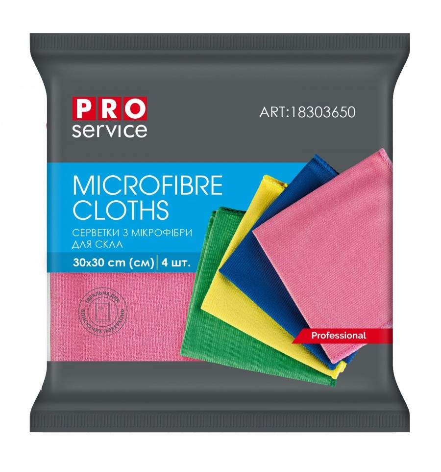 Салфетки PRO service из микрофибры для стекла имеют специальную гладкую поверхность и предназначены для протирания и полировки стеклянных, зеркальных и хромированных поверхностей, элементов мебели, декора и сантехники, особенно требовательных к внешнему виду, наличию прозрачности и блеска. Оптимально подобранная плотность 250 г/м2. и размер 30х30 см позволяют добиться максимального эффекта при уборке. Свойства материала обеспечивают доступ микрофибры в мельчайшие поры и трещины очищаемой поверхности. Салфетки не оставляют разводов и ворса, позволяют производить уборку без применения моющих средств. Салфетки рекомендуется стирать вручную или в автоматической стиральной машине при температуре не более 60 С. Не рекомендуется сушить на обогревательных приборах