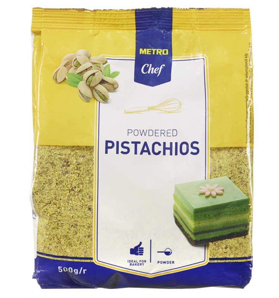 Мука фисташковая (молотые ядра фисташек), ТМ «METRO Chef». Состав: 100% ядра фисташек молотые, порошкообразные. Может содержать следы других орехов, арахиса, глютена, молока и продуктов из него, горчицы, сои и сульфитов. Энергетическая ценность на 100 г: 2448 кДж/591 ккал, жиры – 47,6 г, из них насыщены – 11,9 г, углеводы – 7,6 г, из них сахара – 5,7 г, белки – 28,6 г, соль – 0,00 г. Условия хранения После открывания храните продукт в плотно закрытой упаковке. Дата «Лучше потребить до» и номер партии указаны на упаковке. Страна происхождения: Испания. Страна происхождения основного ингредиента (фисташки) указана на упаковке. Производитель: Importaco Casa Pons SAU, Pol. Ind. Picassent, calle 2 nº 24, 46220 Picassent (Валенсия), Испания. Импортер: ООО "МЕТРО Кэш энд Керри Украина", просп. Григоренко, 43, г. Киев, 02140, Украина. По вопросам продукта обращайтесь по тел. горячей линии импортера: 0800 501 401 (бесплатно в пределах Украины). Масса нетто: 500 г.