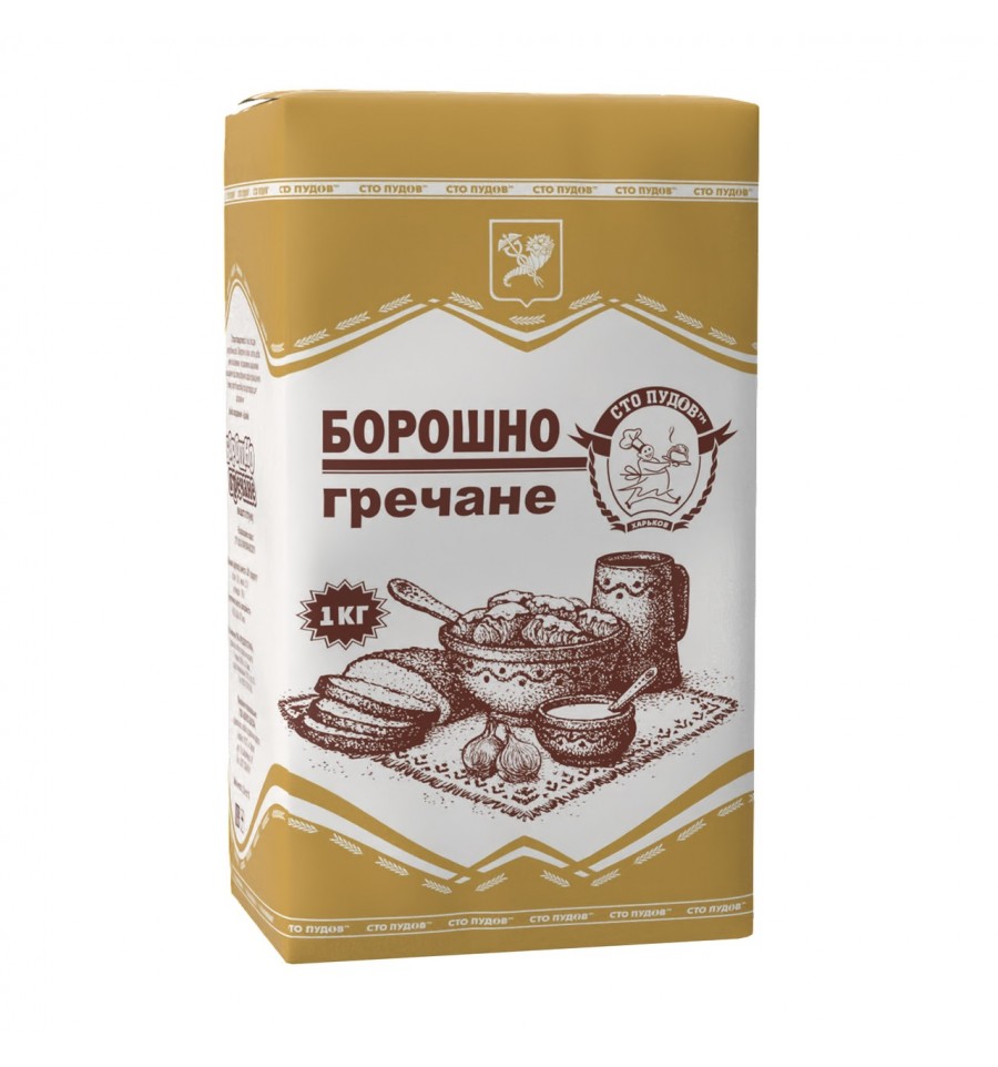 Мука гречневая Сто Пудов 1кг. Состав: мука гречневая 100%. Пищевая (питательная) ценность в 100г продукта: жиров – 2,0g(г), из них насыщенных жиров – 0,3g(г); углеводов – 70,9 g (г), из них сахаров – 1,4 g (г); белков – 9,0 g (г). из них сахаров – 1,3 g (г); белков – 8,9 g(г), соль – 0 g(г). Энергетическая ценность/калорийность на 100 g(г) продукта: 1452,82 kJ(кДж)/ 347 kcal(ккал). Срок годности: 12 мес. (на упаковке указана только Дата Применить к). Хранить в сухих, чистых, хорошо вентилируемых, не зараженных вредителями хлебных запасов помещениях. Номер партии L и дата Применить к указанным на упаковке. Производитель: ООО «ПРОДЭНЕРГО». Страна производства: Украина. Адрес юр. личности и фактический адрес мощностей (объекта) производства: ул. Гв. Широнинцев, 45, г. Харьков, 61170, Украина. Масса нетто: 1000 г