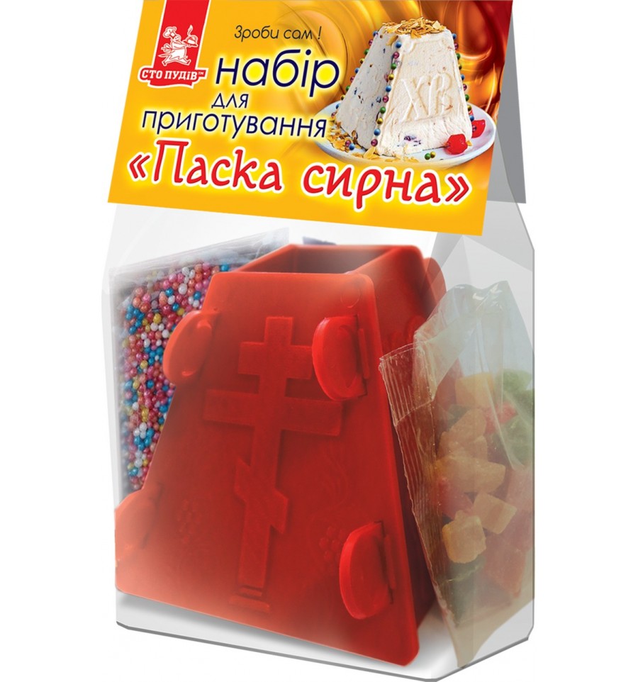 Сто Пудов Набор Пасхальный творог для приготовления 165г. Творог - это особый пасхальный десерт. Нежная, прохладная, с цукатами и праздничным декором – она дополняет классическую выпечку и украшает пасхальный стол. Набор для приготовления творожного кулича от ТМ «Сто Пудов» создан для тех, кто хочет приготовить праздничный десерт легко и красиво - без выпечки и сложных рецептов. Аллергены: пищевые добавки, красители. Сахарная пудра: 1666,4 кДж/398 ккал. Цукаты "микс": 1406 кДж/339 ккал. Посыпка сахарная декоративная: 1641,22 кДж/392 ккал. Углеводы: Сахарная пудра – 99,8 г (г). Цукаты "микс" – 82,0 g(г). Посыпка сахарная декоративная – 98,0 g (г). Белки: Цукаты "микс" – 0,8 g (г). Сахара – 0г. Жиры – 0г. Соль – 0г. Срок годности – 360 суток. Производитель: ООО "Продэнерго". Производитель является оператором рынка пищевых товаров. Адрес производителя: ул. Гв. Широнинцев, 45, г. Харьков, Украина, 61170. Страна: Украина. Масса нетто: 165 г.