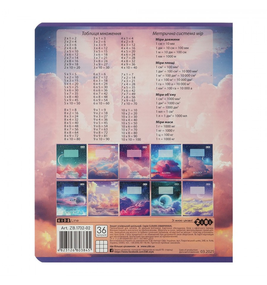 Тетрадь ученическая школьная серия "CLOUDS" по биологии от ZiBi с креативным современным дизайном обложки и блоком полезной справочной информации прекрасно подходят для выполнения классных и домашних работ.36 листов тетрадь в клеточку размер изделия 203х167 мм тип скрепления – скоба внутренний блок: офсетная бумага плотностью 55 г/м² белье бумаги 98-100% поля красного цвета закругленные уголки, которые не заминаются обложка из целлюлозного картона плотностью 190 г/м² с мелованным слоем, полноцветной печатью и полиграфическими эффектами: выборочный УФ лак и тиснение серебряной голографической фольгой на внутренней стороне обложки, а также на первом и последнем дополнительном листе размещена справочная информация по предмету (всего 6 страниц определений, понятий и правил по предмету).