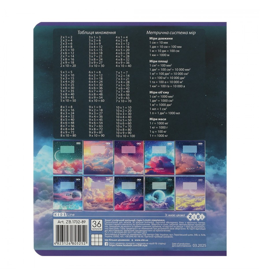 Тетрадь ученическая школьная серия "CLOUDS" от ZiBi с креативным современным дизайном обложки прекрасно подходит для выполнения классных и домашних работ.36 листов тетрадь в клеточку размер изделия 203х167 мм тип скрепления – скоба внутренний блок: офсетная бумага плотностью 55 г/м² белье бумаги 98-100% поля красного цвета закругленные уголки, которые не заминаются обложка из целлюлозного картона плотностью 190 г/м² с мелованным слоем, полноцветной печатью и полиграфическими эффектами: выборочный УФ лак и тиснение серебряной голографической фольгой