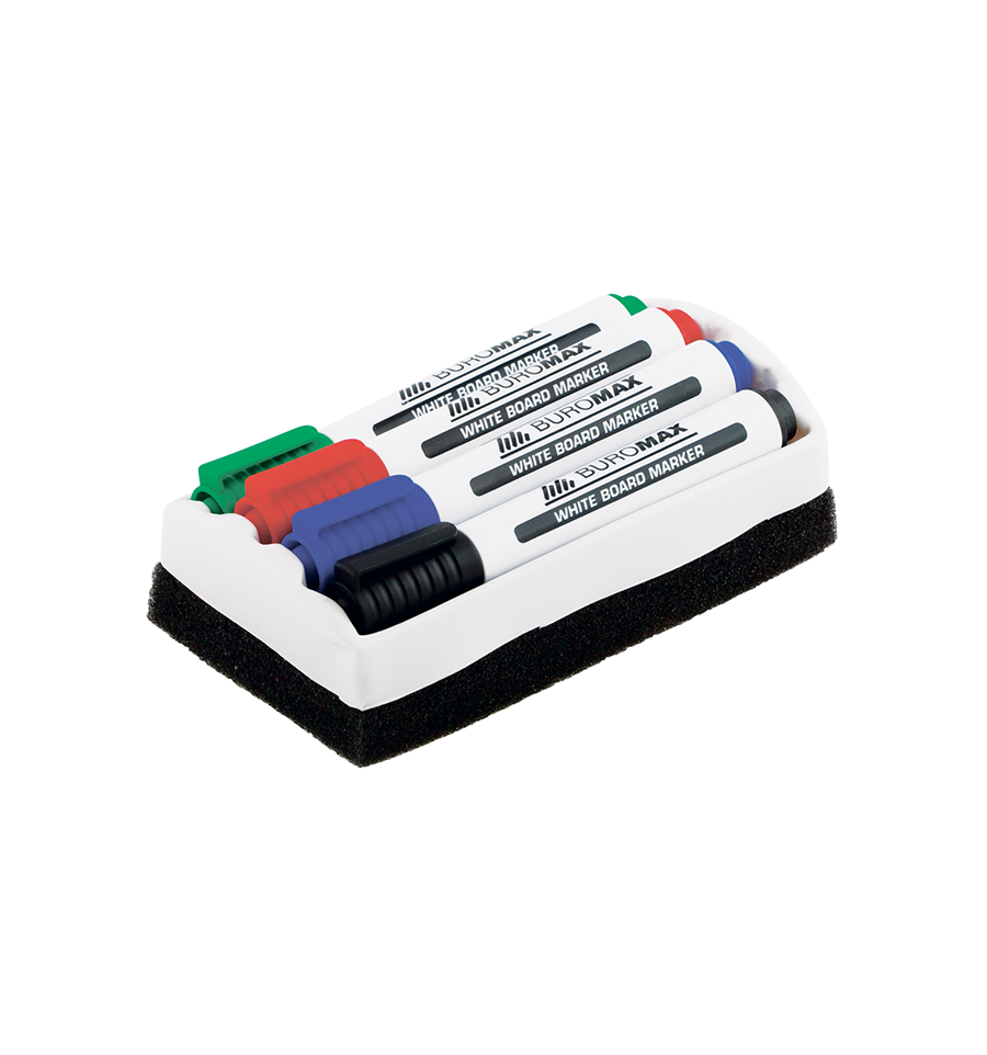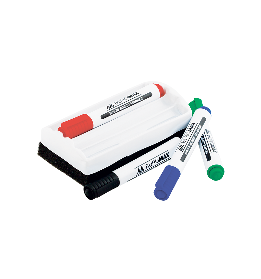 Маркеры BUROMAX для сухостираемых досок - прекрасные инструменты для офисных презентаций, мозговых штурмов, докладов, а также для школьного и домашнего обучения. Высококачественное чернило на спиртовой основе создано по специальной технологии, которая обеспечивает насыщенное, четкое нанесение, благодаря высокой пигментированности и контрастности чернил. При этом чернила быстро высыхают, поэтому надписи не размазываются и не растекаются. Кроме того, благодаря быстрому высыханию надписей, сделанных маркером BM.8800, отлично подходят как для правши, так и для левши. При этом, чернила легко стираются с досок посредством губок или тканевых салфеток. Высокая контрастность чернил маркеров BM.8800 обеспечивает хорошую видимость маркерных надписей на разных, в том числе, дальних расстояниях. Износостойкий пишущий узел с гладким пористым пулевидным наконечником обеспечивает насыщенную и четкую линию письма толщиной от 2 до 4 мм, которая может варьироваться в зависимости от нажима и наклона при письме. Волокнистость и мягкость наконечника предупреждает скрип и появление сторонних звуков при письме маркерами в процессе проведения презентации или урока, а также царапин на доске. Надписи легко и плавно ложатся на доску, что делает процесс использование маркера BM.8800 максимально комфортным. Пишущий узел и наконечник выдерживают высокие показатели давления и нажима без потери функциональных свойств. Корпус из первичного PP (полипропилена) не пропускает воздух к стержню, не допускает его быстрое высыхание и обеспечивает возможность длительного хранения и использования маркера. В набор ВМ. 8800-84 входят маркеры для сухостираемых досок 4 цветов: синий, черный, красный и зеленый, а также губка для удобного стирания следов маркеров с доски. Маркеры BUROMAX для сухостираемых досок – отличный инструмент как для профессионального использования в офисах, так и для обучения дома, в центрах развития, садиках, школах и в ВУЗах.