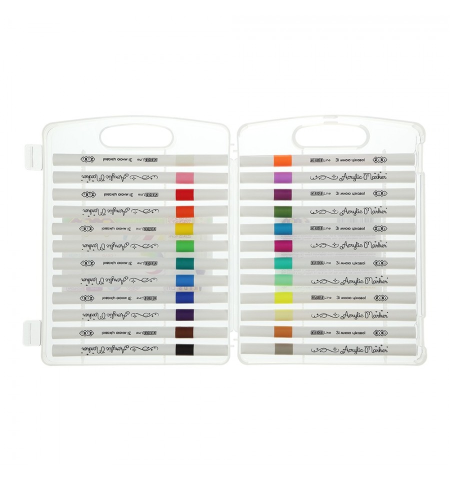 Набор акриловых маркеров от ZiBi – отличный пишущий инструмент для творчества. Маркерами можно писать и раскрашивать по разным поверхностям: бумага, картон, ткань, дерево, керамика, пластик, стекло, металл. Подойдет как для детей, так и для начинающих творческих мастеров, желающих воплотить свои фантазии. С помощью таких маркеров можно оформлять любые работы, аппликации, фоторамки и фотоальбомы, маркеры прекрасно пишут и имеют насыщенный цвет на черной бумаге.24 разнообразных ярких насыщенных цвета Толщина линии письма 1-2 мм. Корпус круглой формы из белого глянцевого пластика, вставка в цвет чернил. Вентилируемый колпачок для безопасного использования Чернила на водной основе Нет запаха Быстро высыхают После высыхания не размазываются по поверхности Длина 140 мм Упаковка: крепкий пластиковый пенал с подвесом.