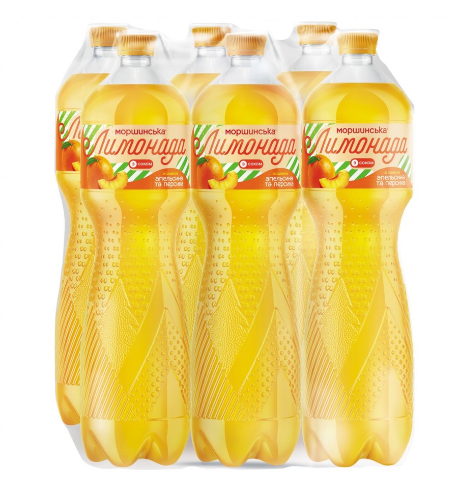 Напиток безалкогольный Моршинская Лимонада сокосодержащая среднегазированная со вкусом апельсина и персика 1.5л. Состав: вода природная минеральная Моршинская 84%, сироп глюкозно-фруктозный, соки восстановленные из концентрированных соков: яблочный 1.5%, апельсиновый 1%, персиковый 0.5%, натуральные ароматизаторы, кислота: лимонная кислота, краситель бета-каротин, антиоксид: и глицериновые эфиры древесной смолы, терпены апельсина. Энергетическая ценность продукта: 164кДж/100мл, 39ккал/100мл. Питательная (пищевая) ценность продукта: белки – 0г/100мл, жиры – 0г/100мл, насыщенные жиры – 0г/100мл, углеводы – 9.3г/100мл, из них сахара – 9.1г/100мл, соль – 0г/. Условия хранения: хранить при температуре +5...+25ºC. Без попадания воды и прямых солнечных лучей. Срок годности: 6 месяцев. Температура хранения после открытия продукта: хранить при температуре +2...+8ºC. Срок годности после вскрытия продукта: 1 день. Страна изготовитель: Украина. Производитель и адрес производителя: ЧАО Моршинский завод минеральных вод Оскар, ул. Геологов, 12а, г. Моршин, Львовская обл., Украина, 82482. Адрес производственных мощностей: ул. Геологов, 12а, г. Моршин, Львовская обл., Украина, 82482. Объем: 1.5л.