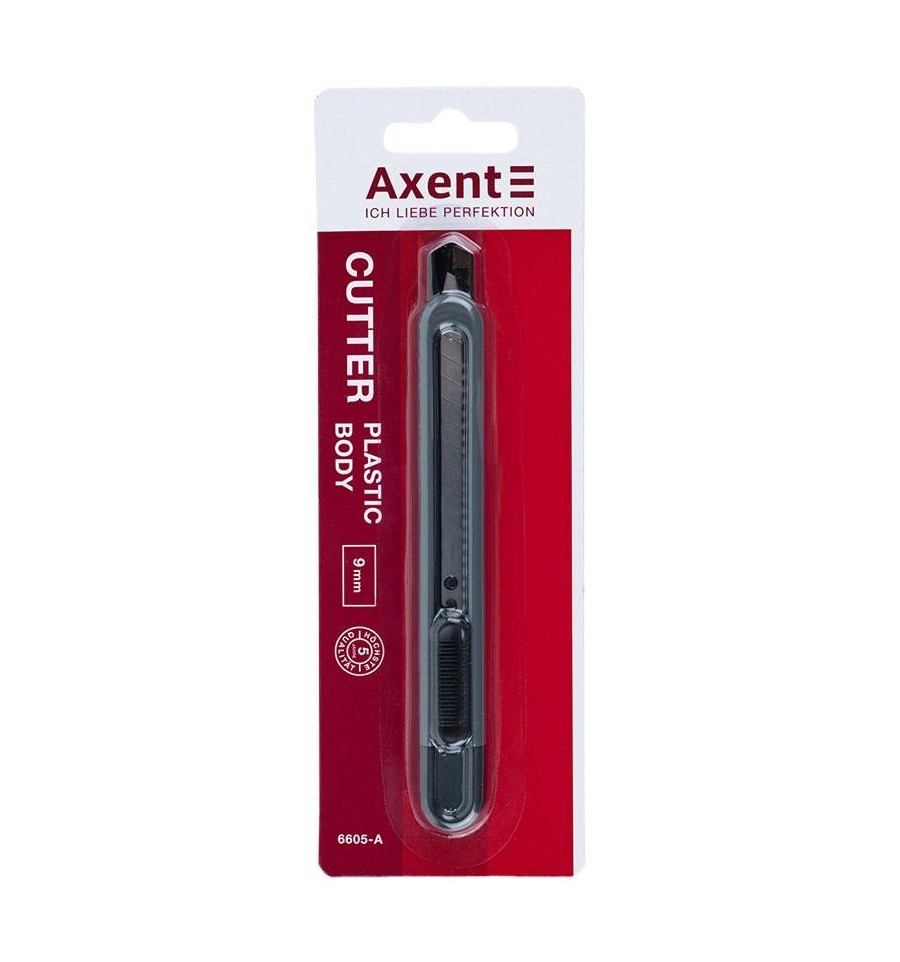Канцелярский нож Axent 6605-А с лезвием шириной 9 мм и автофиксатором станет незаменимым помощником в ежедневной работе с бумагой, пленкой, картоном или тонким пластиком. Благодаря современному дизайну и продуманной эргономике корпуса удобно лежит в руке и позволяет точно контролировать каждое движение.Надежная металлическая направляющая обеспечивает устойчивость лезвия, что особенно важно для мелкой и аккуратной работы. Механизм автофиксации прочно удерживает лезвие в нужном положении – без дополнительных усилий и риска самопроизвольного сдвига во время работы. Оптимальный вариант для офиса, учебы, рукоделия и бытовых нужд. Компактный размер и легкий вес делают эту модель удобной для повседневного использования. Сдержанный черный цвет придает ножу универсальность и выглядит стильно в любой рабочей среде.Особенности:стальное многосекционное лезвие шириной 9 мм; металлическая направляющая; автоматическая фиксация; механизм ступенчатой подачи лезвия; эргономичный корпус из прочного пластика; стильный сдержанный дизайн.
