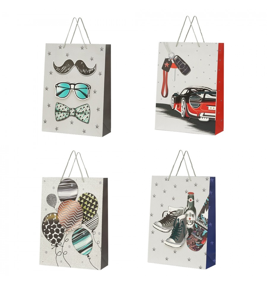 Подарочные пакеты от BUROMAX – предназначены для упаковки подарков, сюрпризов, наборов разных предметов. Такой пакет предоставит праздничность, торжество, атмосферу и интригу во время вручения или дарения и сделает подарок цельным и более привлекательным.Изготовлен из плотной белой бумаги (плотность 210 г/м²) Внешняя поверхность – полноцветная печать с полиграфическими эффектами: выборочный глитер и 3D декор на передней стороне Текстильные ручки из цветного шнура имеют эстетичный вид, выполнены под цвет дизайна пакета. Размер L (ШхВхГ) – 31х42х12 см Микс 4-х дизайнов ассорти