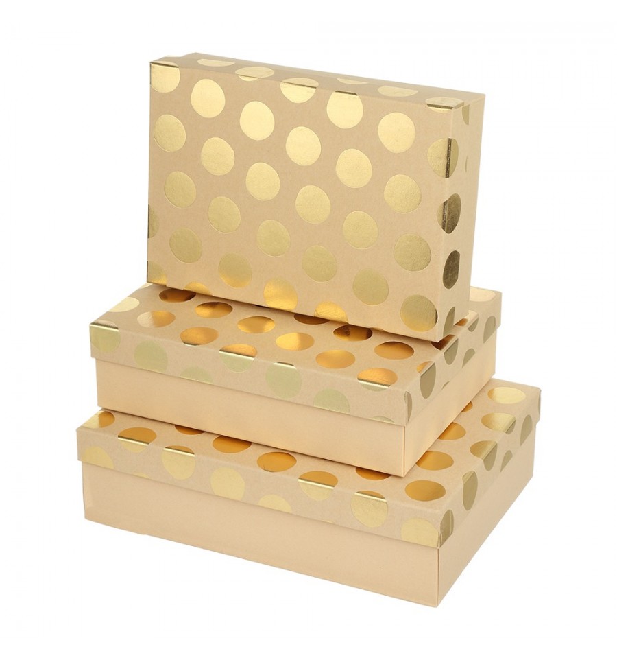 Подарочные коробки от BUROMAX – предназначены для упаковки подарков, сюрпризов, компоновки разных предметов в наборы. Такая упаковка придаст праздничность, торжественность, атмосферу и интригу во время вручения или дарения и сделает подарок цельным и более привлекательным. Упаковка разных подарков в коробки одного дизайна или одной серии – это стильно и со вкусом! Такие наборы можно использовать для оформления интерьера к праздникам и торжествам.3 коробки в наборе, складываются друг в друга Крышки снимаются Размеры (ШхДхВ): S – 27.5х19.5х7.5 см; M – 29х21х8 см; L – 33х23.5х9 см Крепкие, изготовленные из очень плотного белого картона (плотность 1200 г/м²), выдерживают большой вес и нагрузку, не сомнутся и лучше защитят подарок. Наружная поверхность – бумага с полноцветной печатью и полиграфическими эффектами: выборочное тиснение цветной фольгой Три дизайна в одном стиле
