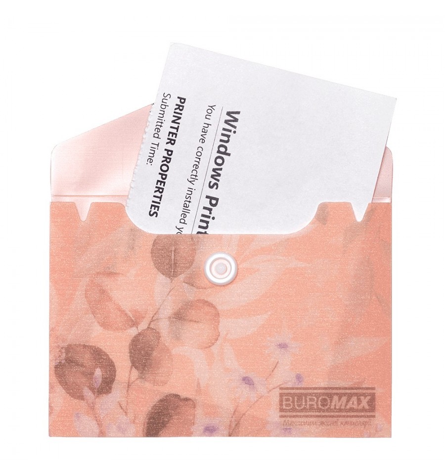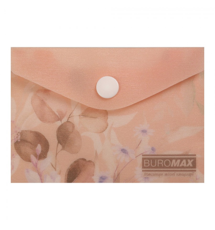 Папка-конверт на кнопке серии ARABESKI от BUROMAX подходит для хранения и транспортировки визиток, пластиковых карт, пропусков или проездных билетов Папка выполнена в стильном цветочном дизайне с искрящимся на свете блеском непременно будет привлекать и вдохновлять! Папка пригодится сотрудникам офисных и бизнес центров, студентам и школьникам, защитит содержимое от смятия, намокания или загрязнения.под формат А7 (размер 74х105 мм) материал: матовый полупрозрачный пластик толщиной 180 мкм закрывается клапаном с помощью пластиковой кнопки, что обеспечивает надежную сохранность вложенных предметов и легкий доступ к ним основной цвет: персиковый Купите другие канцтовары серии ARABESKI, с цветочными и пастельными дизайнами и соберите собственную уникальную коллекцию, которая обязательно подчеркнет Ваш стиль и вкус и обязательно будет радовать взгляд!