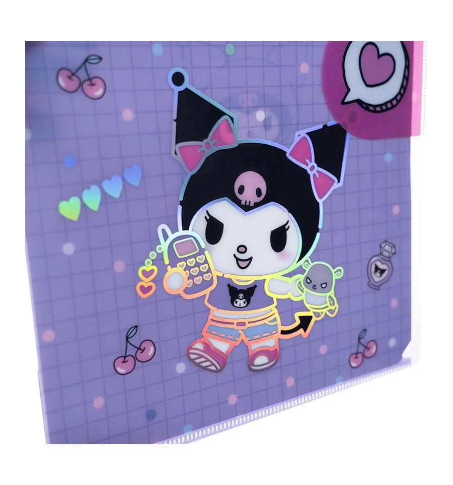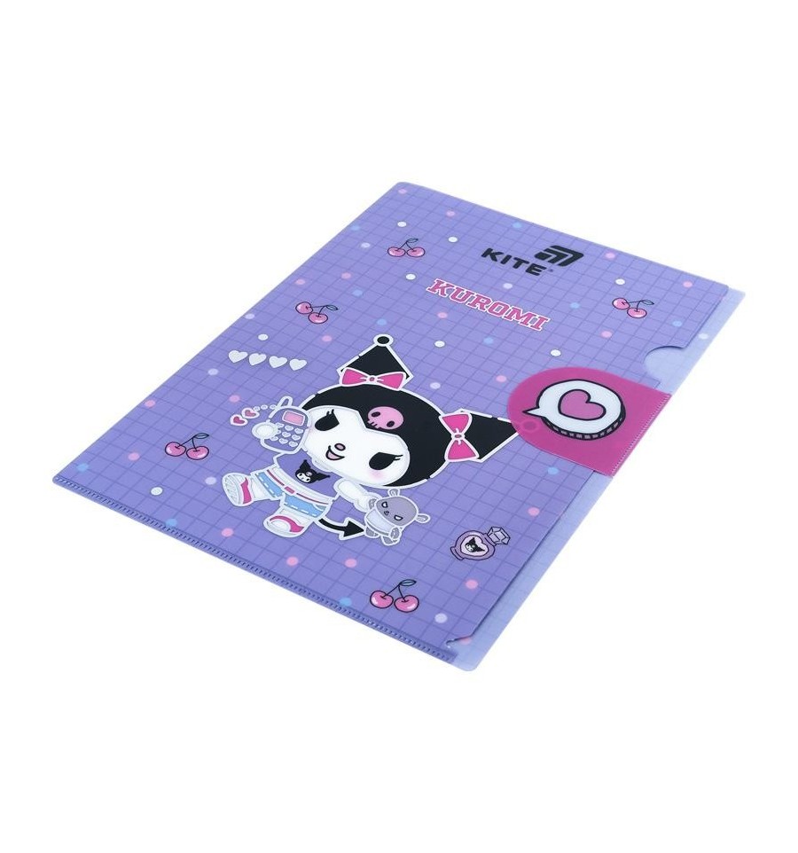 Папка уголок Kite HK25-248-1 – стильный и удобный аксессуар для документов. Она помогает поддерживать бумаги в порядке, защищая их от замятия и случайных загрязнений. Универсальный формат A4 позволяет хранить распечатки, конспекты, рисунки или другие важные бумаги.Документы легко укладывать и извлекать, а клапан надежно фиксирует их внутри, чтобы ничего не выпало даже во время активного дня. Это идеальный вариант для школы, творческих проектов или хранения личных материалов. Папка уголок поможет поддерживать порядок и всегда иметь под рукой все необходимое.Дизайн в лицензии Kuromi – это стильный и дерзкий персонаж, который точно привлечет внимание. Идеально для тех, кто любит отличаться и иметь нечто особенное!Собери коллекцию канцелярии Kite в любимой лицензии, чтобы любимые герои всегда были рядом.Особенности:плотный пластик 300 мкм – крепкий, практичный и приятный на ощупь; удобный формат А4 – подходит для рефератов, распечаток и творческих работ на альбомных листах; лицензия Kuromi – для вдохновения и хорошего настроения; матовая поверхность, украшенная фольгой, – изысканная и эстетическая.